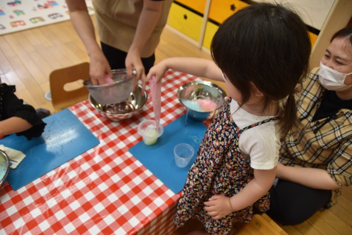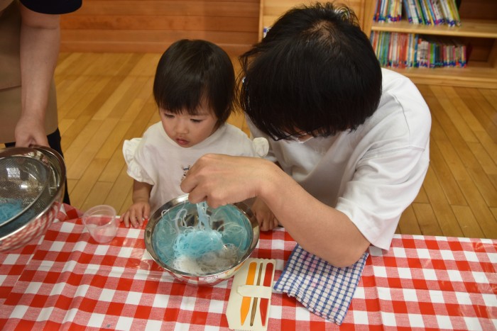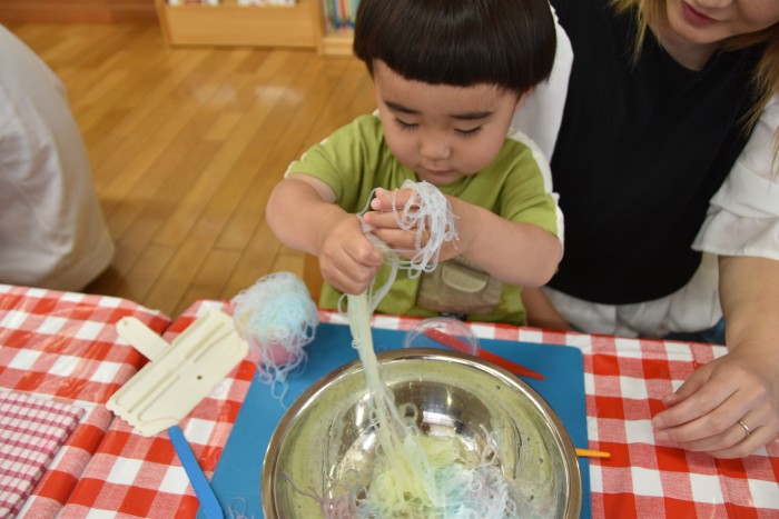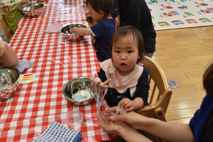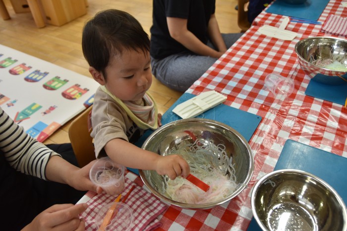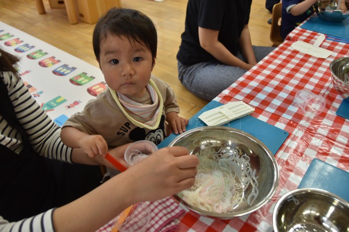 色の付いた春雨が配られるとみんなニッコリ笑顔♡
