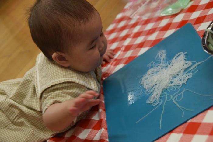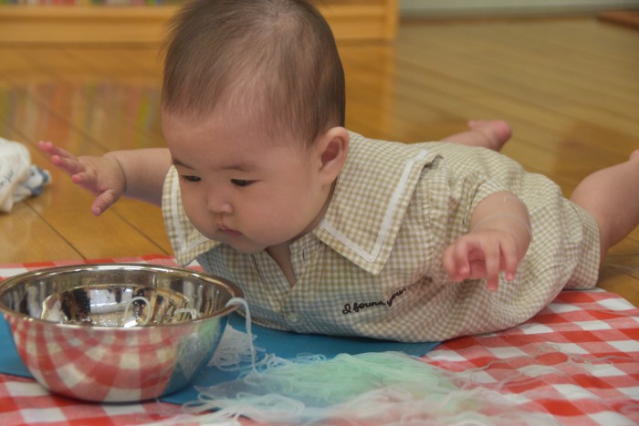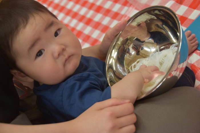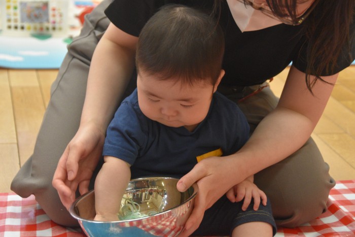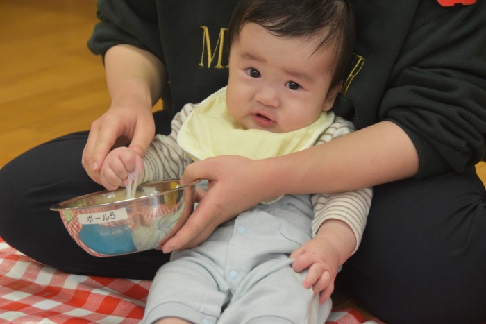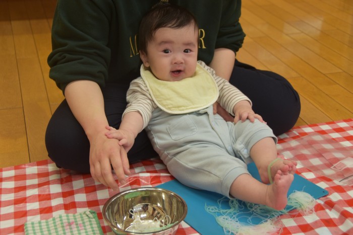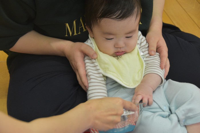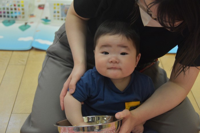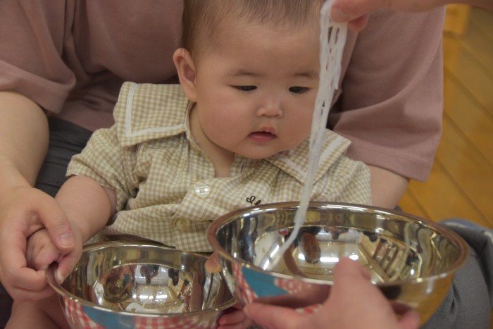 初めての春雨に戸惑った表情のお友達や、興味津々のお友達。