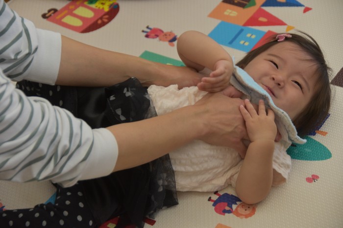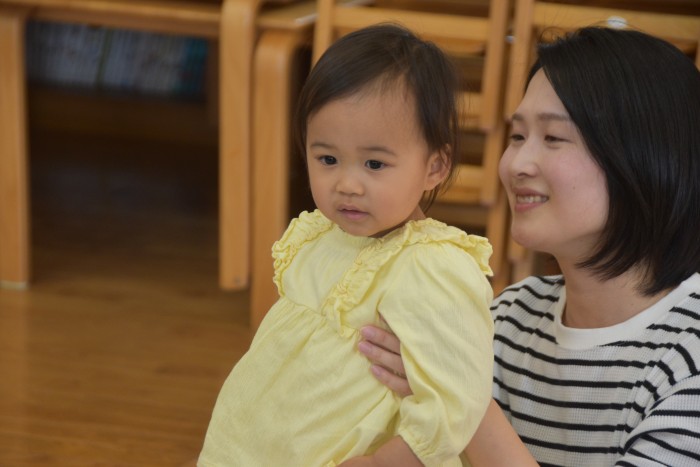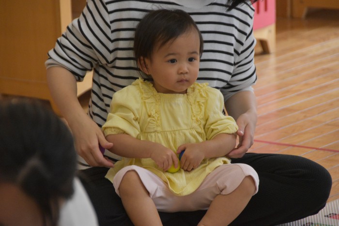ママのお膝でニコニコのお友達やこちょこちょされて楽しそうな笑い声が聞こえてきましたよ~