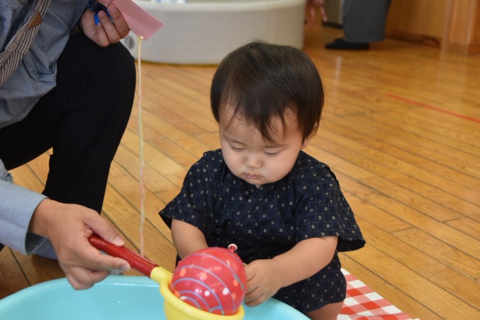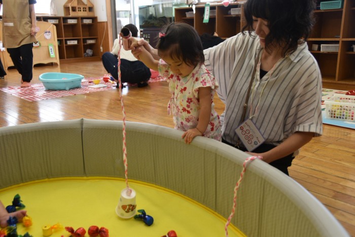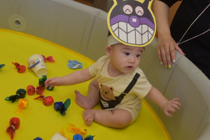魚釣りはママと一緒にお手伝いしてもらいながら釣ってみたり、好きな色のお魚を自分で掴んだりしました🐟