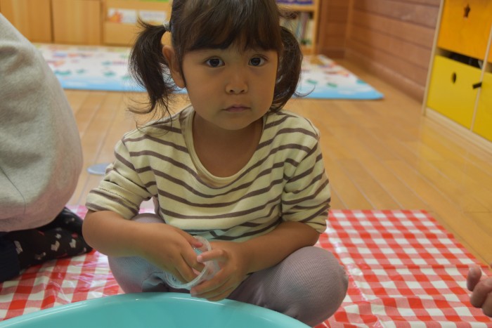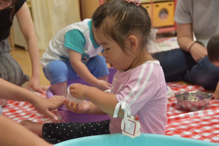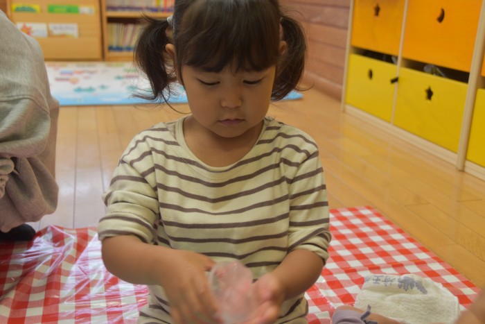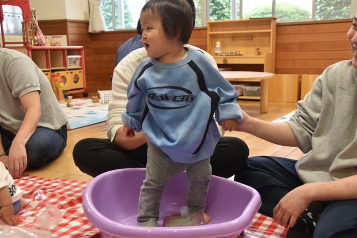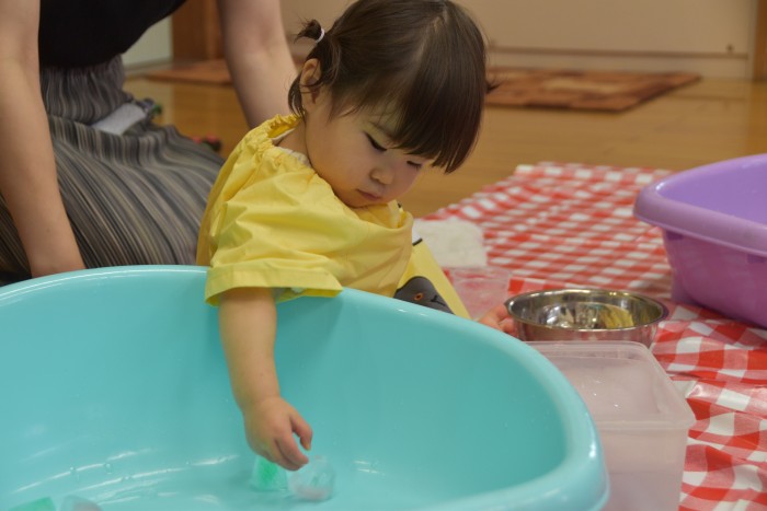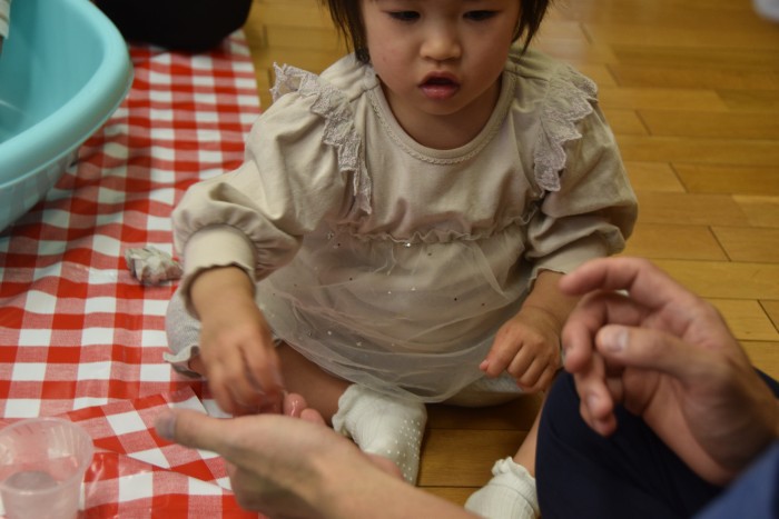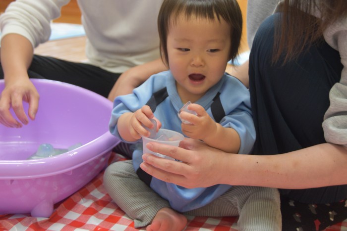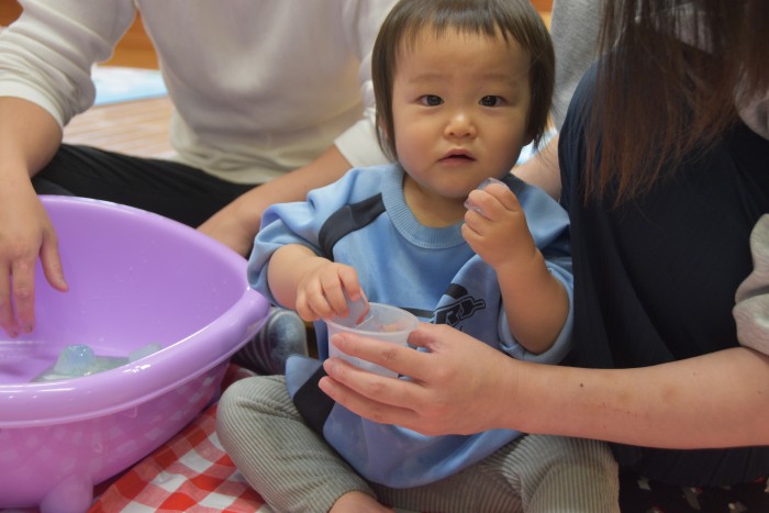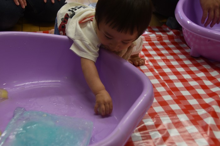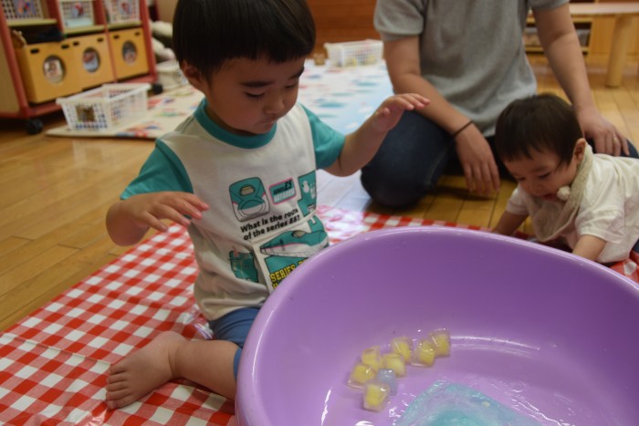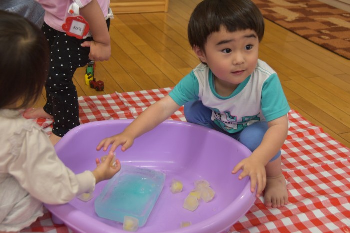 初めはちょっと心配そうにしていたお友達も冷たい感触が気に入って最後まで遊んでくれました👏