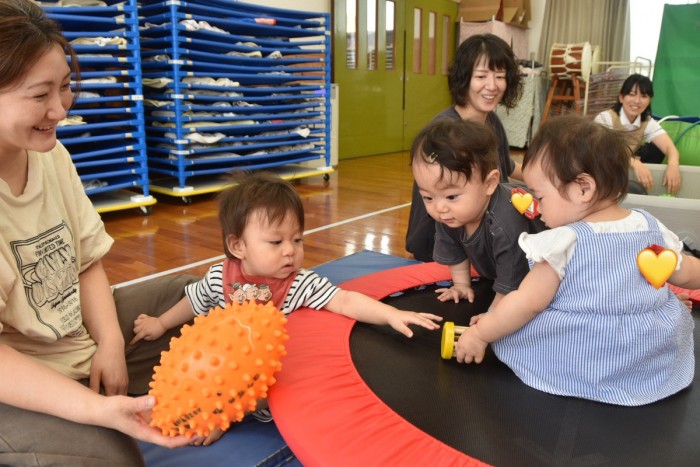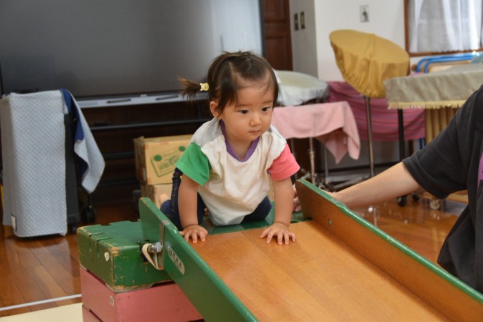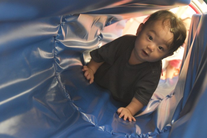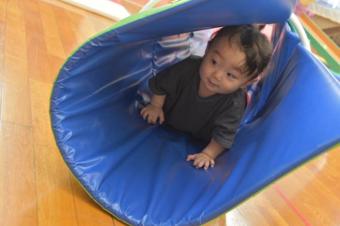 ゆらゆら揺れる中トンネルの中を上手にハイハイしているお友だちも(*^^*)