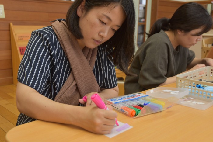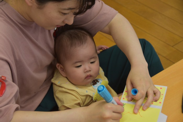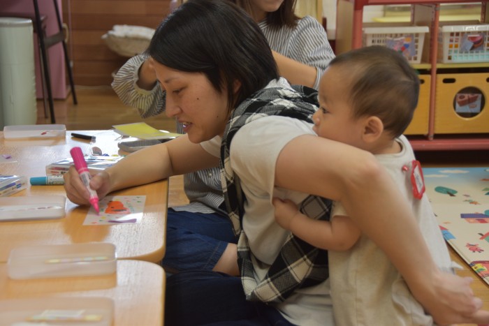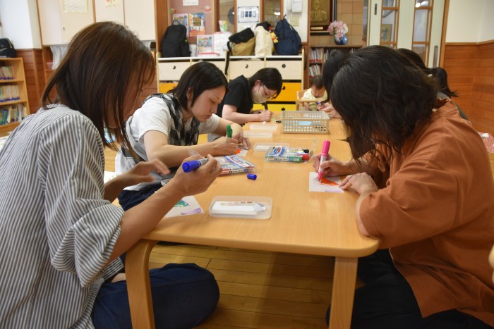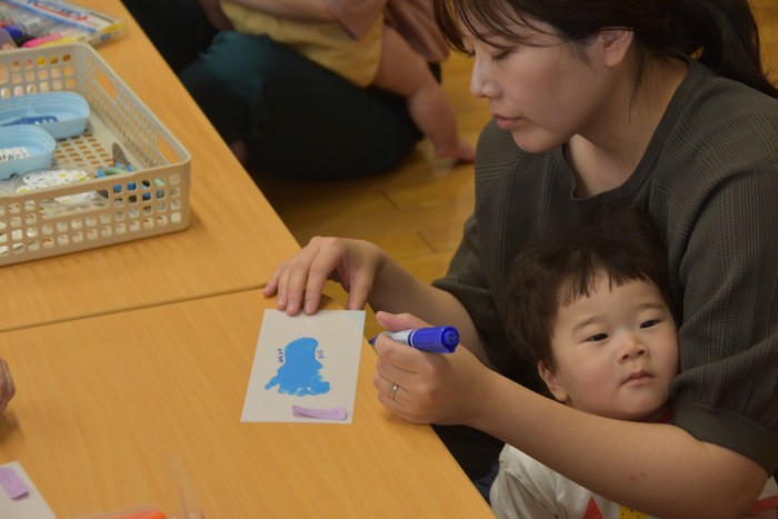 足型を取って、ママたちに文字や柄を描いてもらいました♫