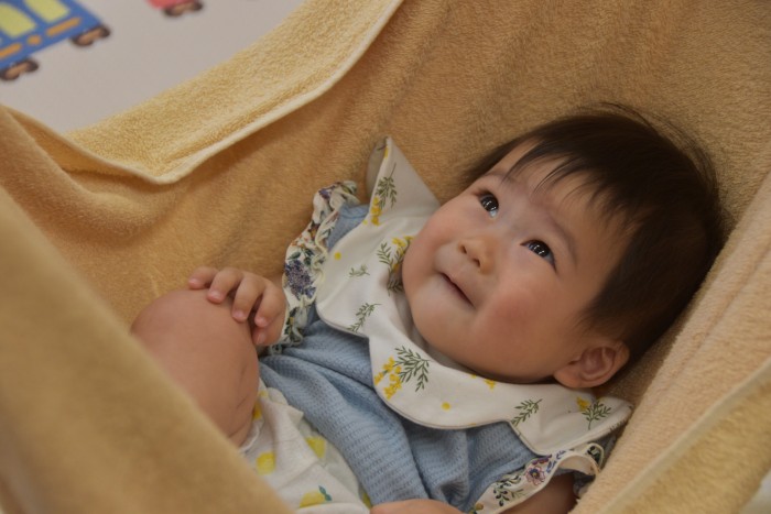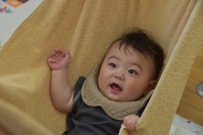 給食の前には、赤ちゃん体操とタオルブランコを楽しみました~(^^♪