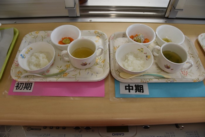 ※中期食 ・7倍がゆ ・みそ汁 ・しらすとさつまいもの煮物 ・小松菜のマッシュ ・果物