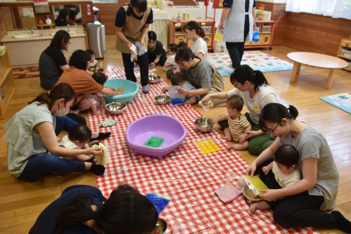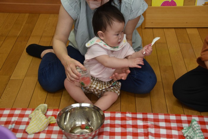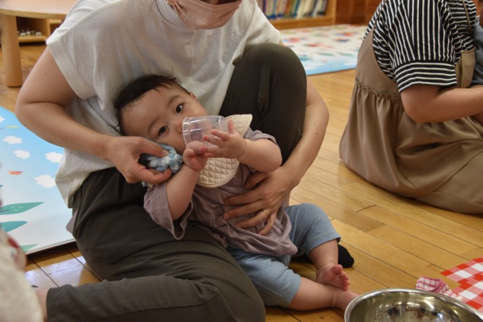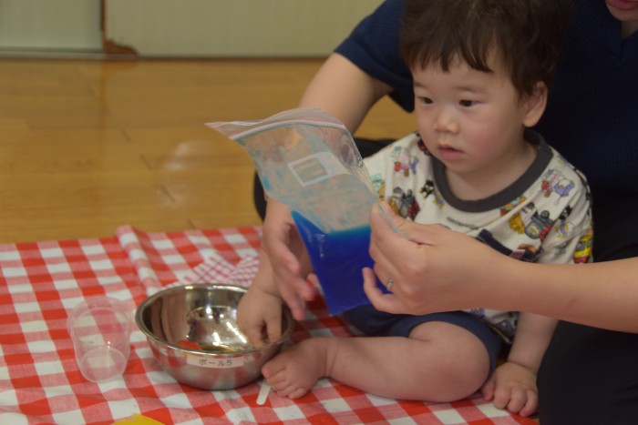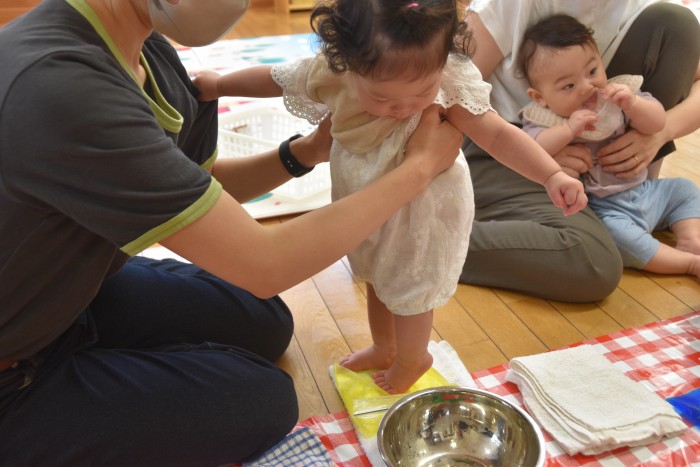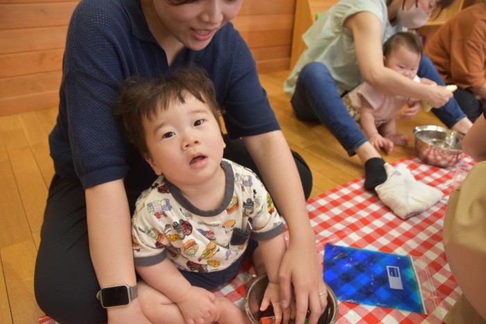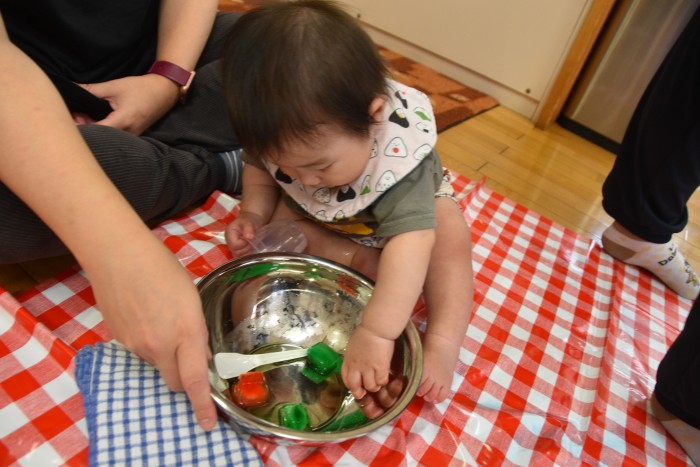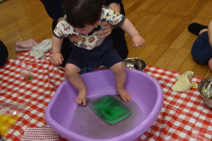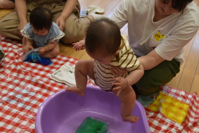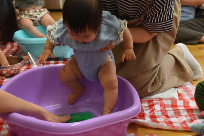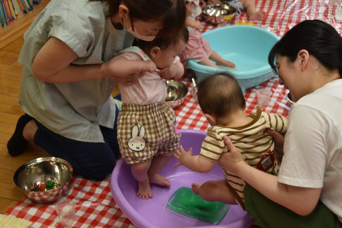 遊んでいるうちに冷たさにも慣れてきた様でタライの中に入って楽しんでくれたお友達もいました✨