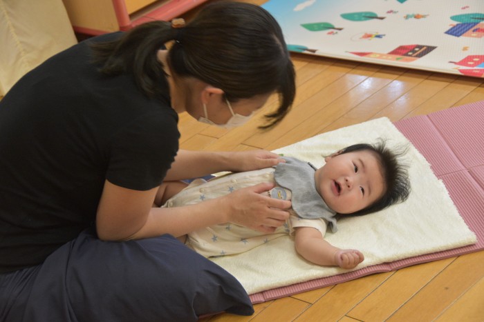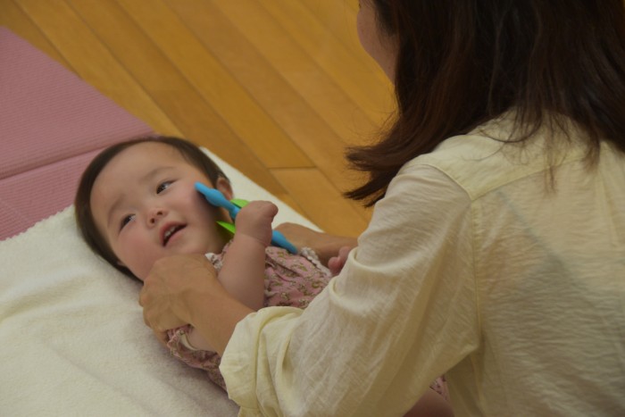 日常のスキンケアを楽しく出来るように、お歌を歌ったりたくさん触れあいながら楽しみました(^^♪