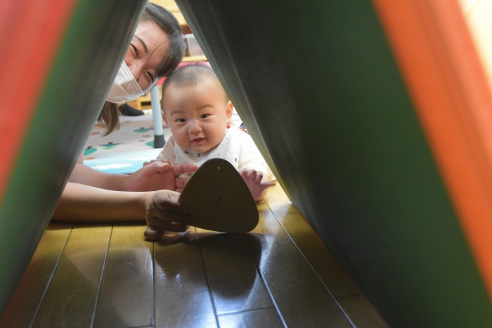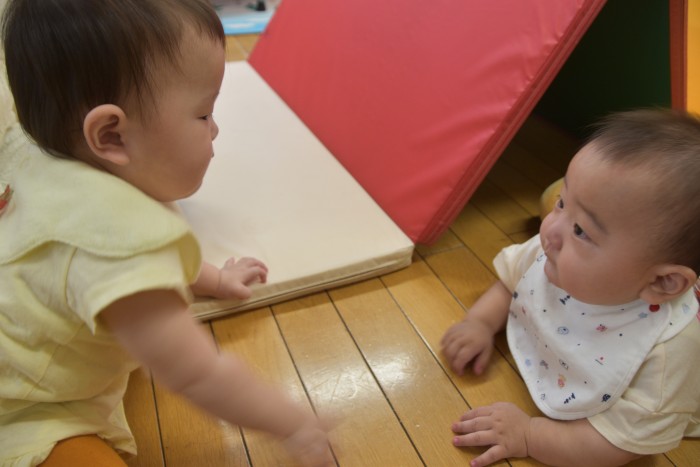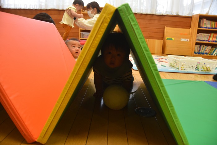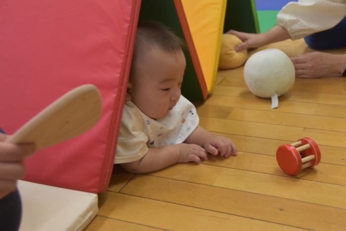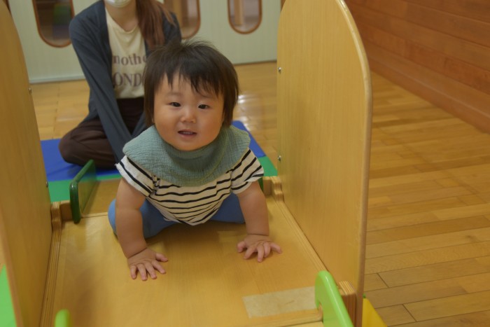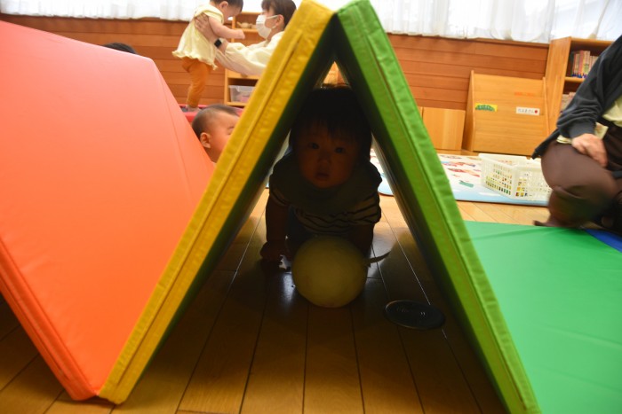 トンネルはちょっと暗くて恐るおそる覗いていたお友達もいましたが、反対側のママを見つけると嬉しそうに進んで通り抜ける事ができました👏👏