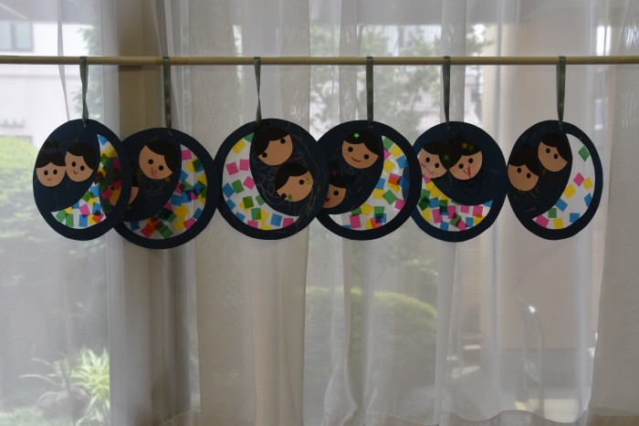 最後に織姫と彦星をペッタンしたら完成です🎋