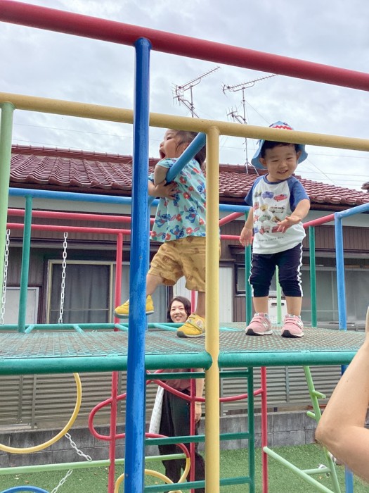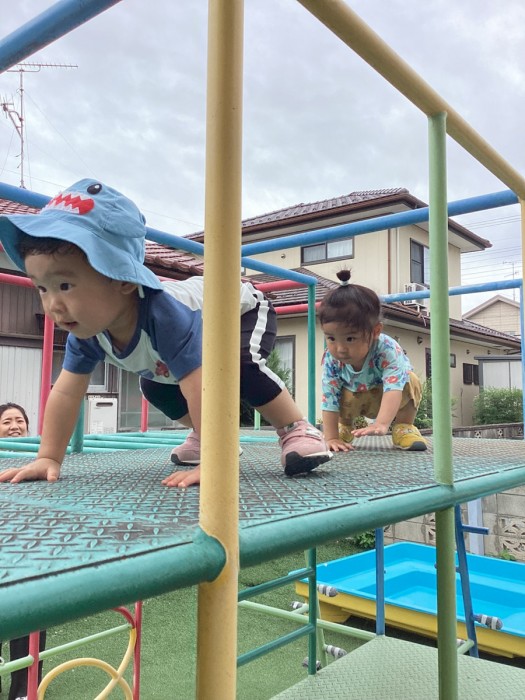 お友だちのまねっこをしたり、お友だちと仲良く滑り台♪