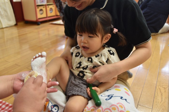 ちょっと苦手なお友だちも頑張って足型をとらせてくれました!!