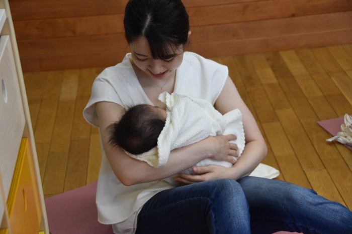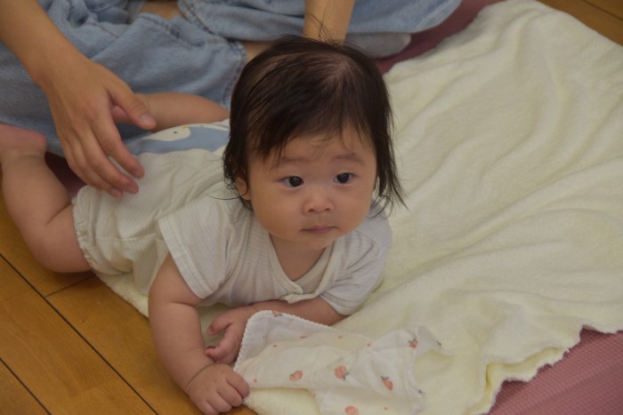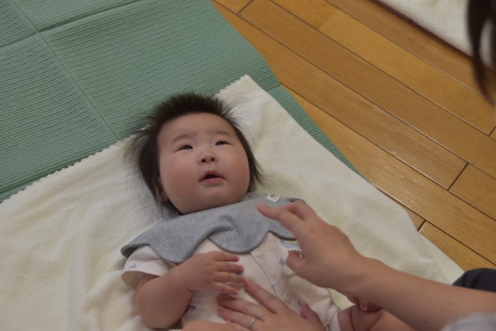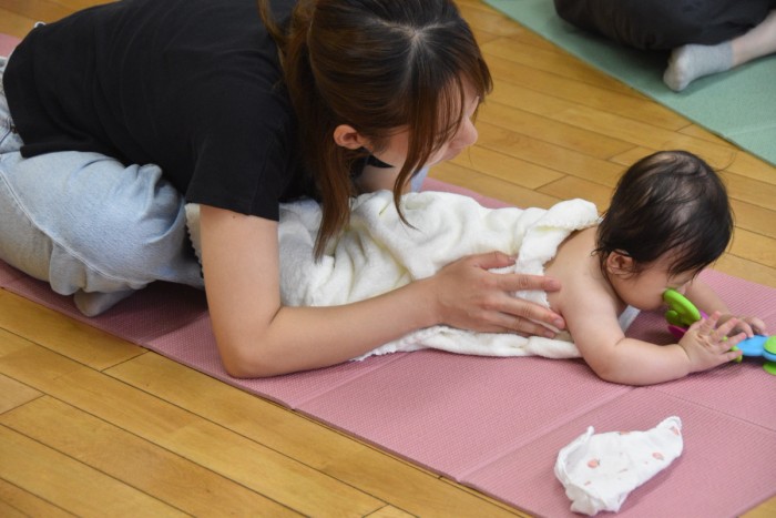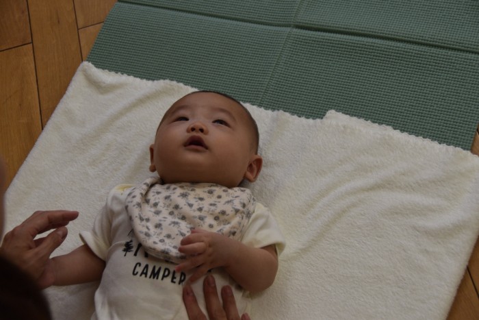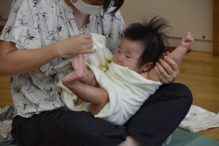 今日は講師のゆきえ先生に来てもらい、ベビーマッサージ!