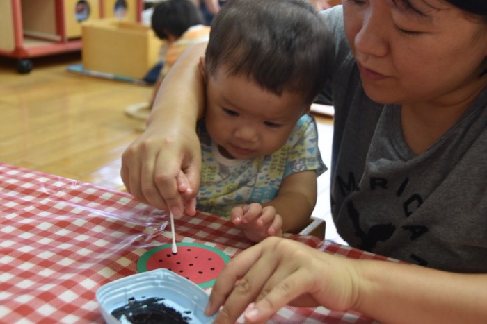 スイカの種をポンポンスタンプ!