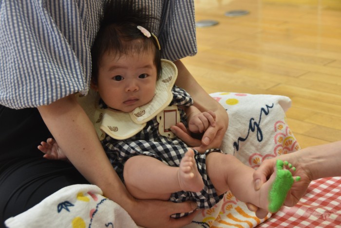 今回は足型をお魚に見立ててみましたよ~(*^^*)