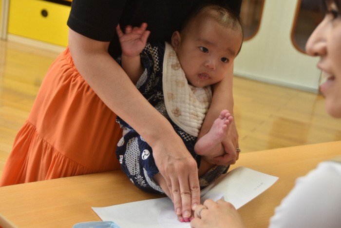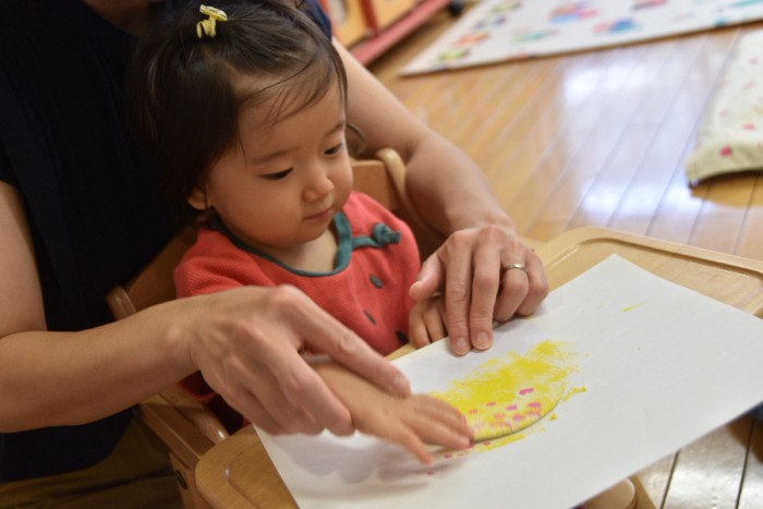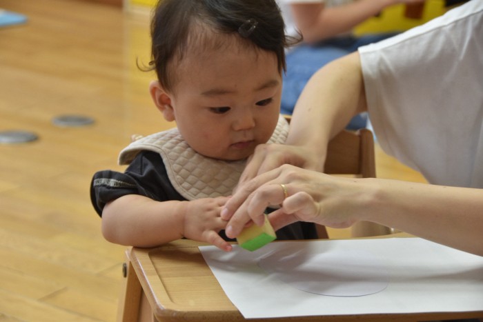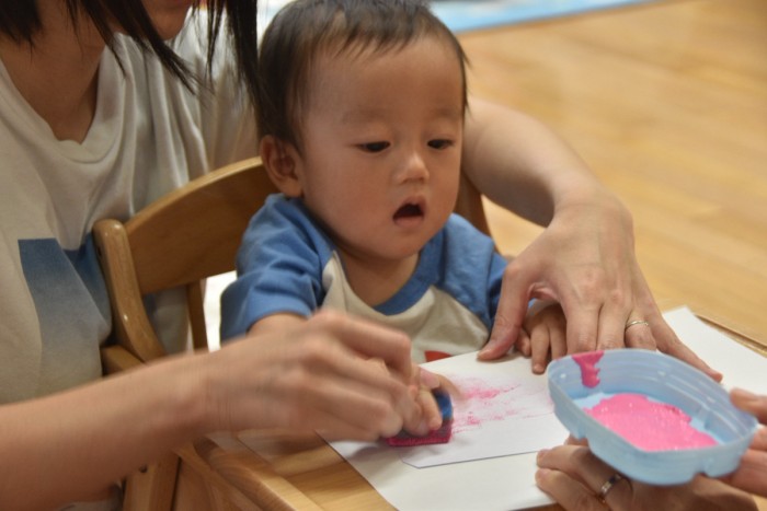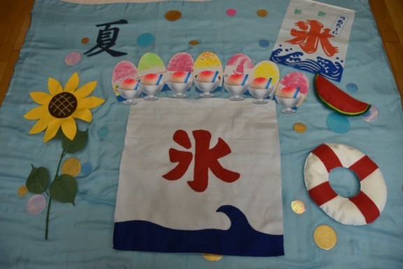 スタンプをママと一緒に押して、かき氷も作ったよ!