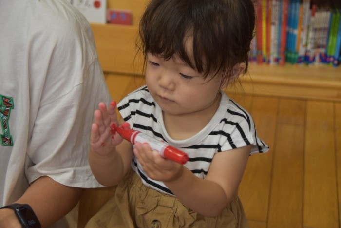 今日は、キッズのうちわ製作!