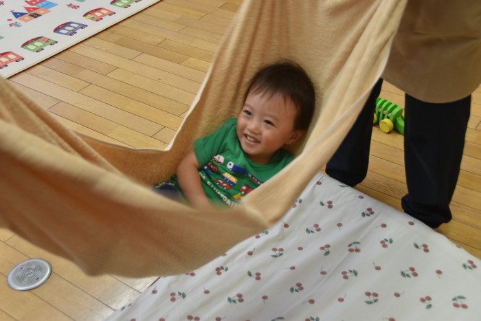 最初は不安な顔をしていたお友だちもゆらゆら揺れると