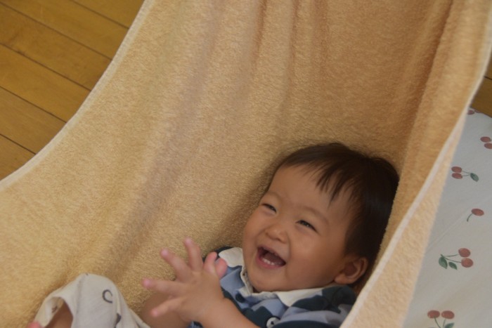 製作の前にタオルブランコ♪