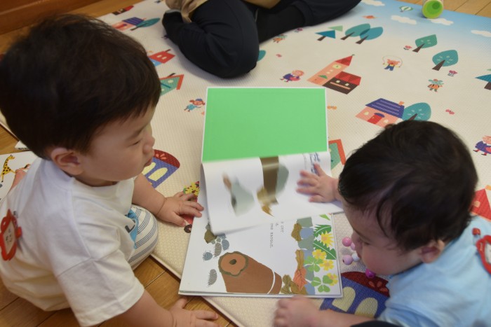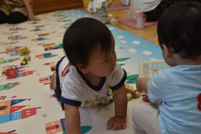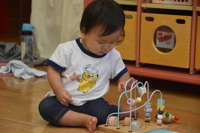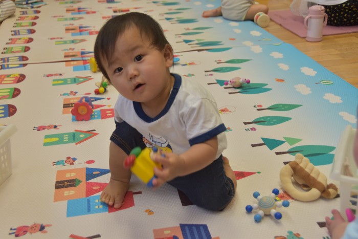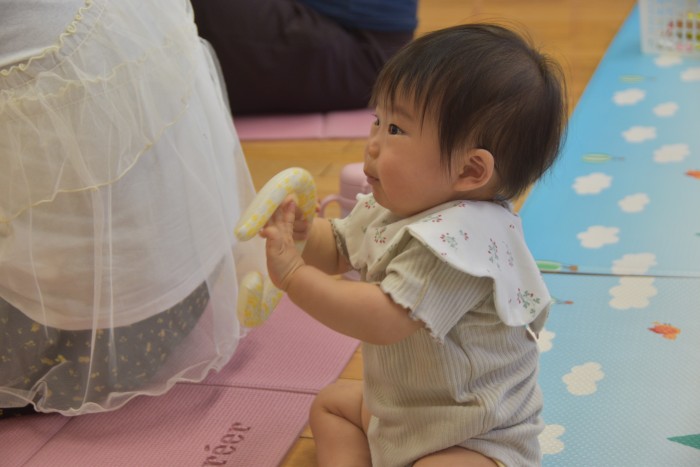 ママが活動中はおもちゃで遊んだり、ママの近くにいたり