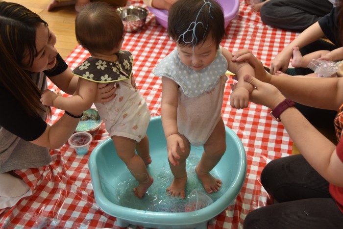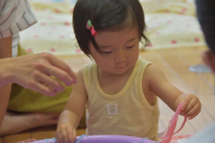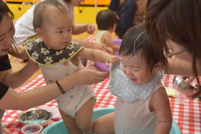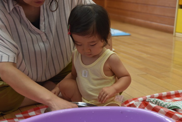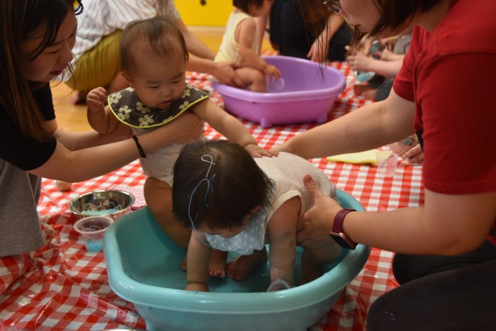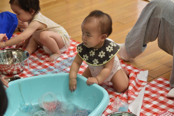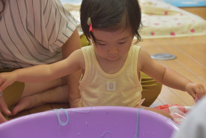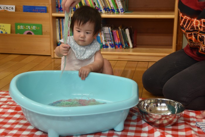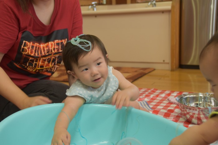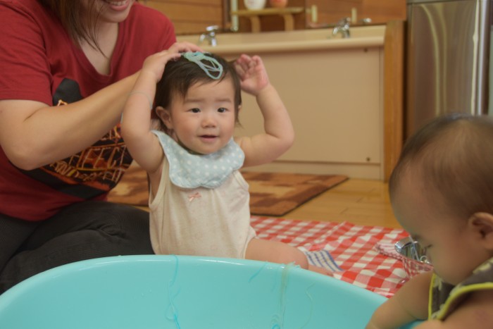 頭に春雨を乗せてみたり、春雨が入ったタライの中に入ってみたり