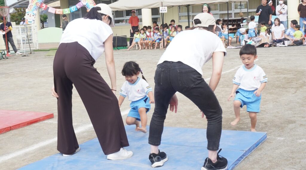 お家の人と手をつないでボールをはこんだり、ジャンプしたりして、とても思い出に残る運動会でしたね😊少し難しいこともお家の人と一緒に最後までやり遂げることができました♩