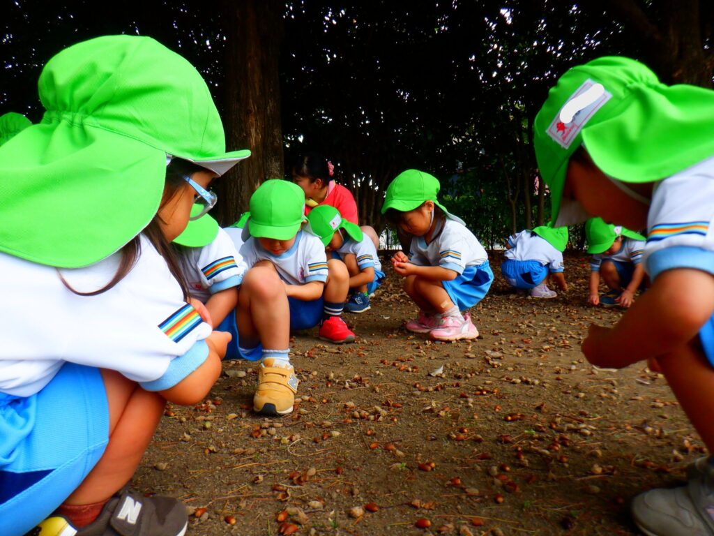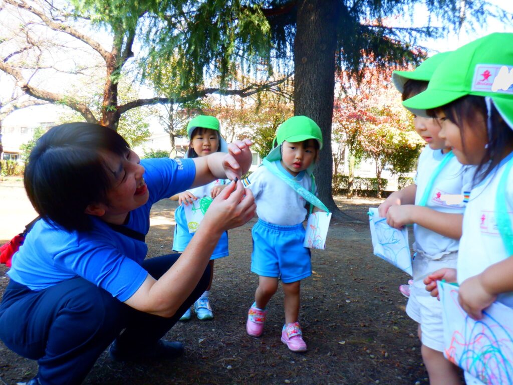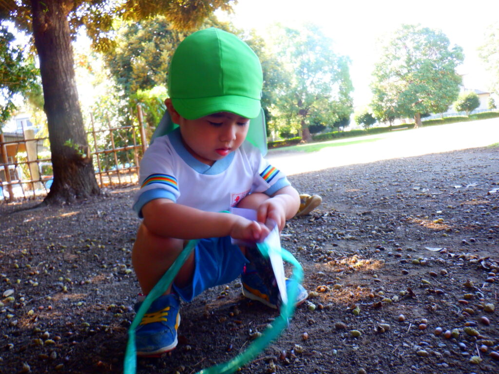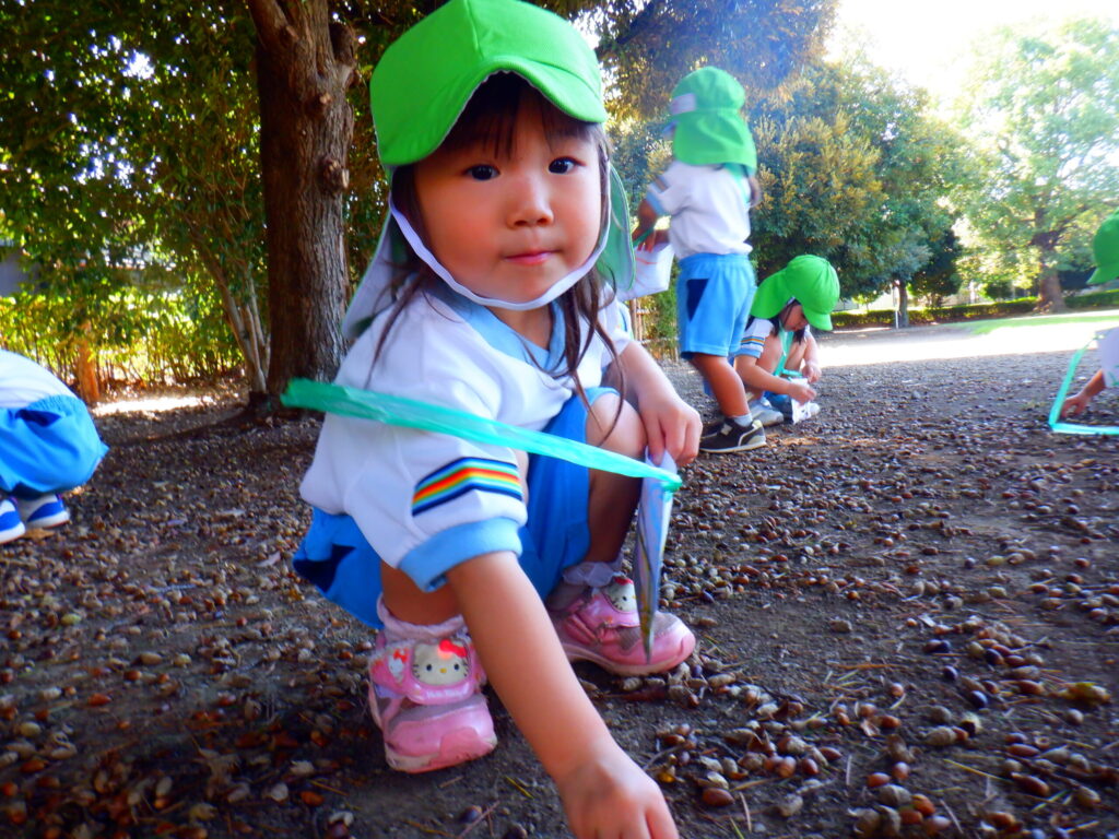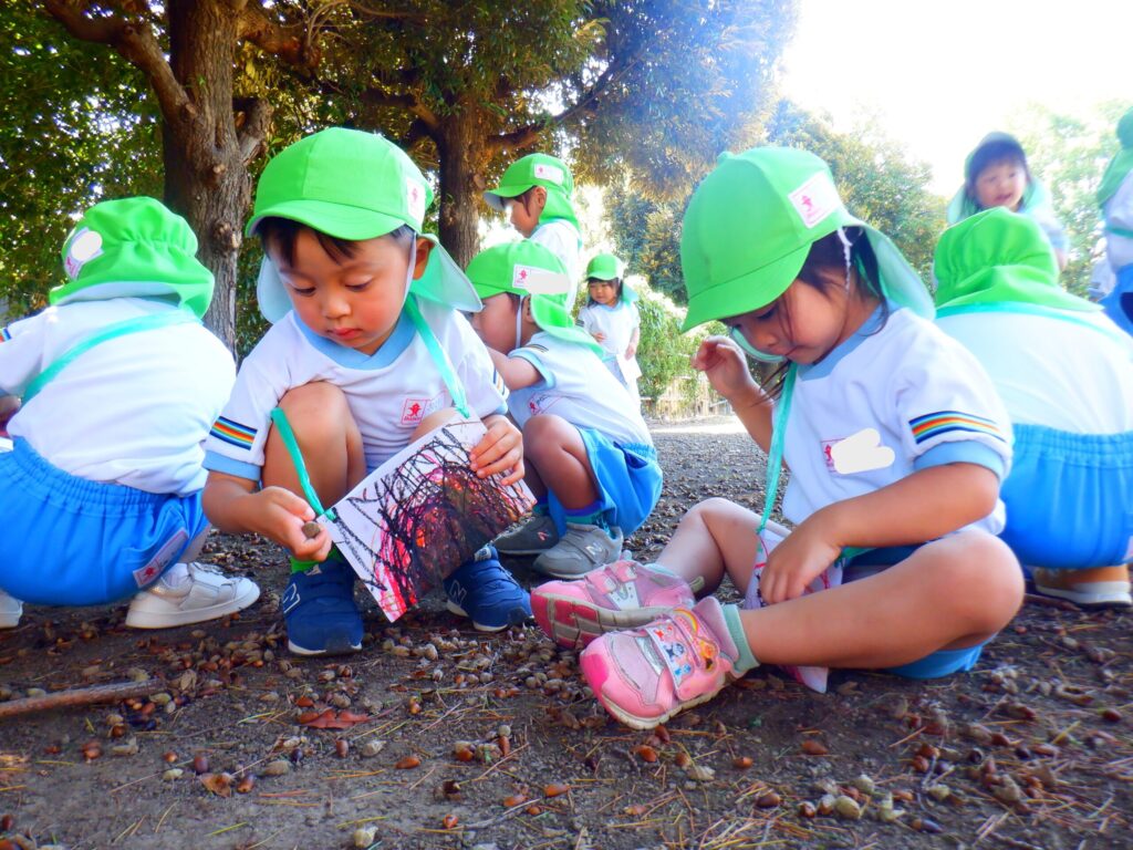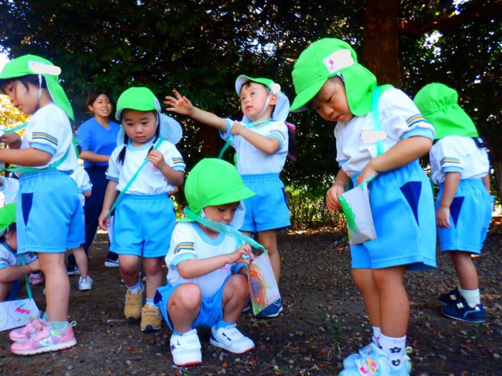 別日にはお散歩バックを持って見福公園までいきました。「ドングリ入れよ!」「お土産にするー!」と自分でたくさん拾ってお散歩を楽しんだひまわり組さんでした!