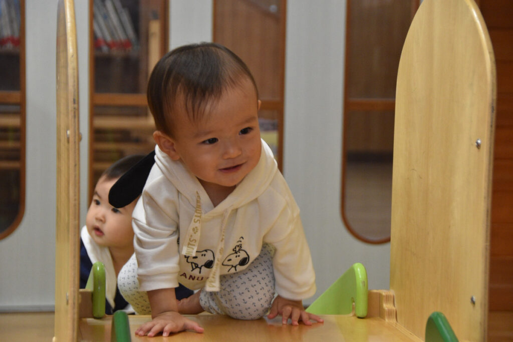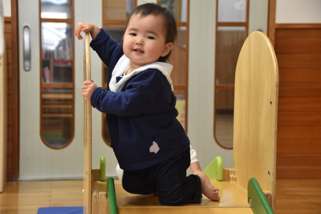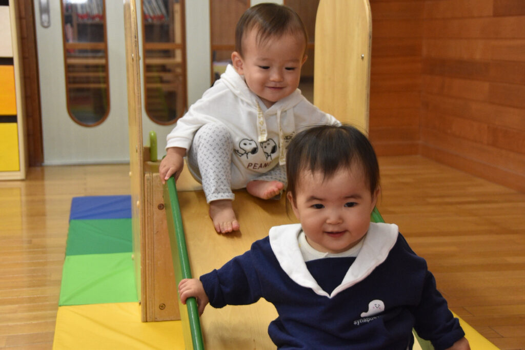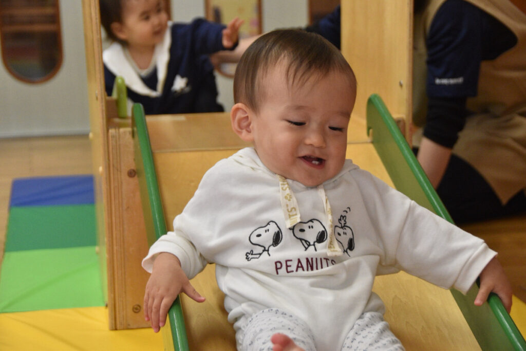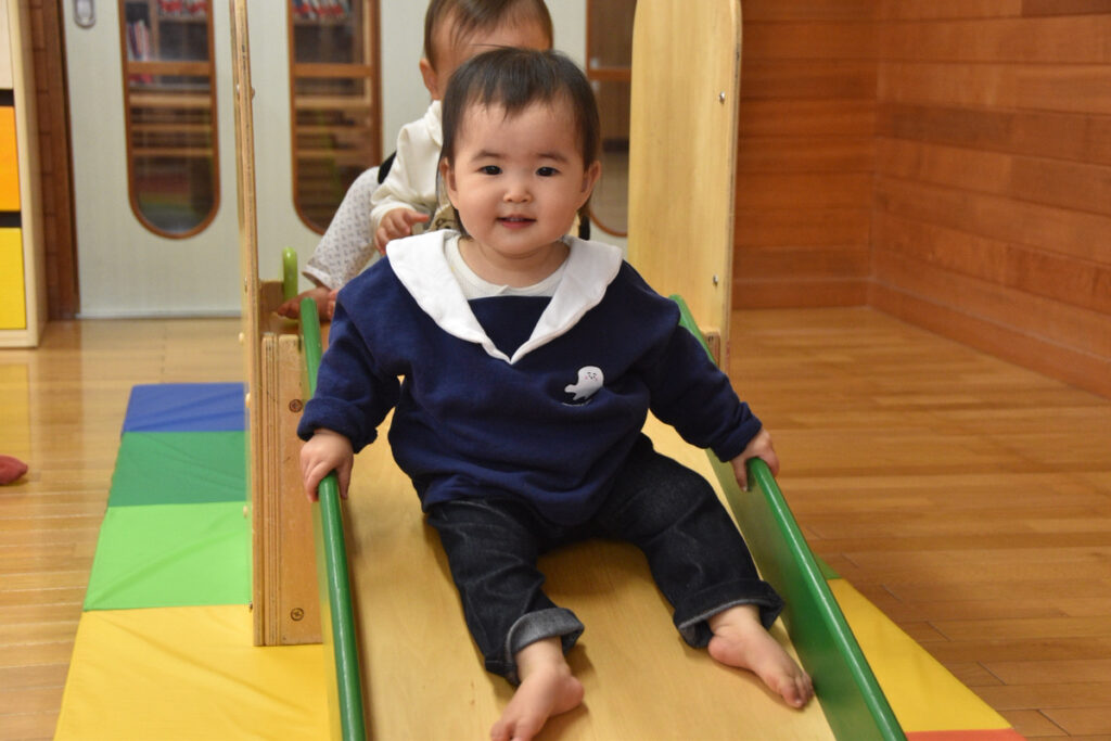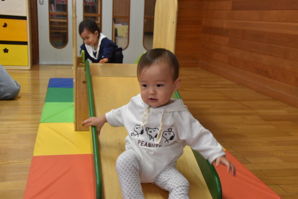 ご飯の前にお部屋で滑り台やマットのお山で体を動かして遊びましたよ😀