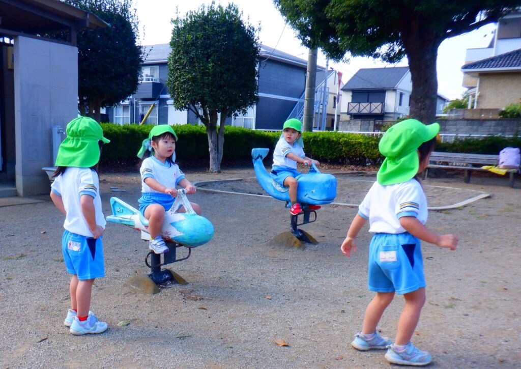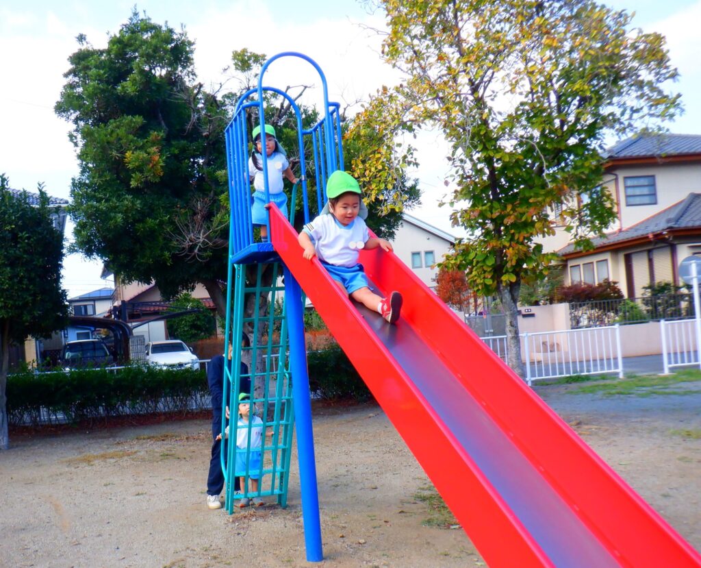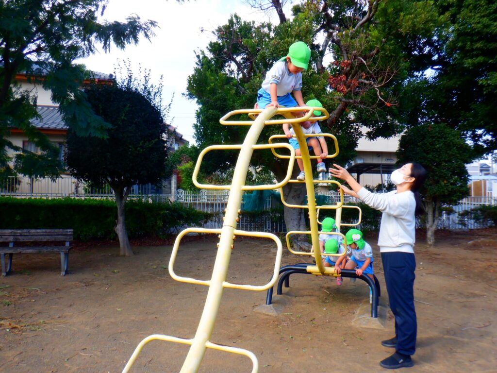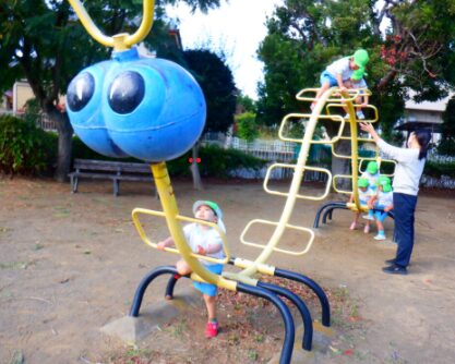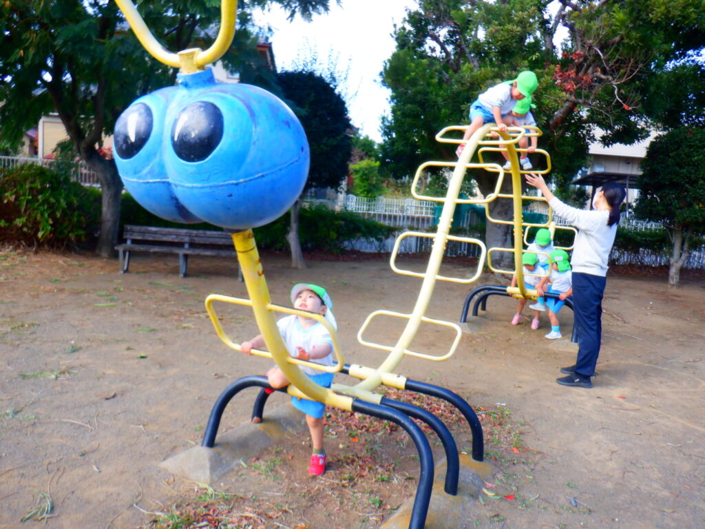 大きなイモムシさんのいる遊具があり、高い所にチャレンジする姿がありました♪