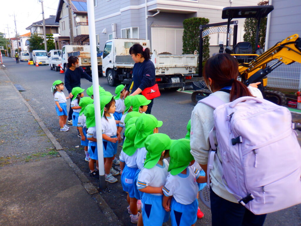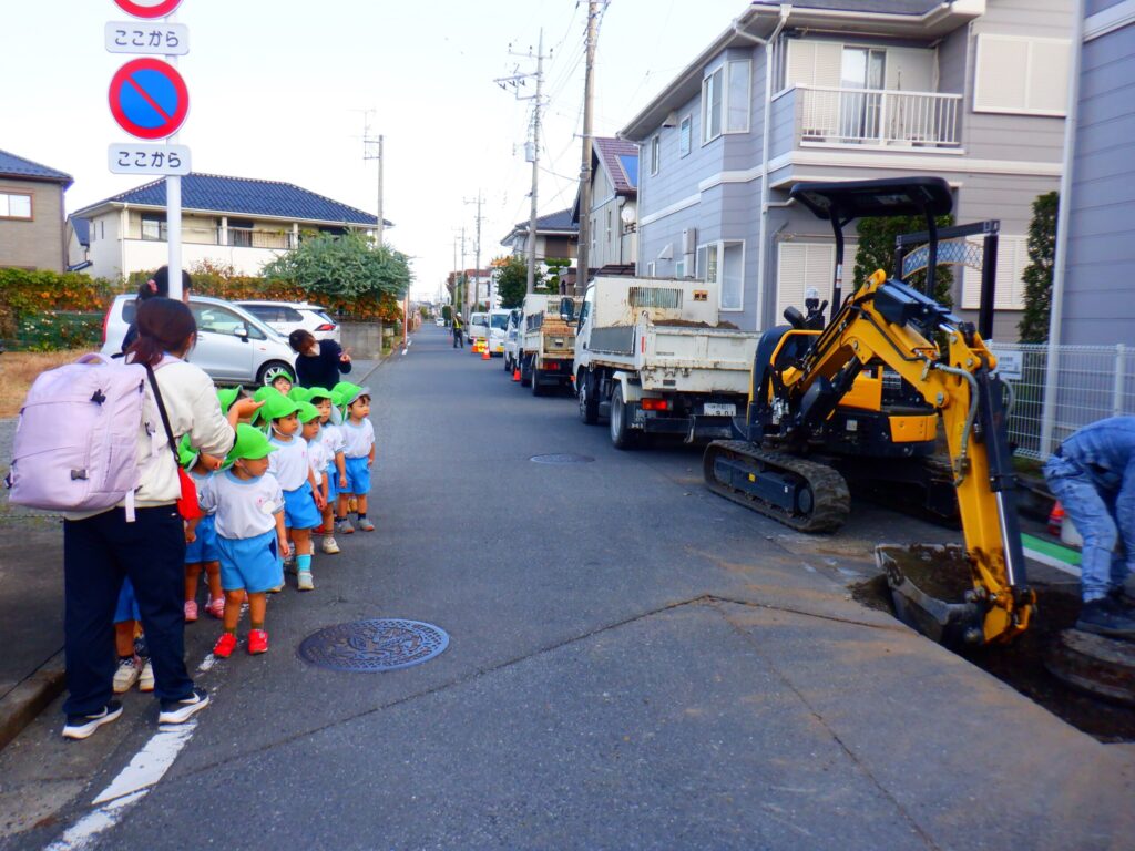 行く途中にショベルカーを見つけ、「ショベルカーだ‼」とお仕事している方に興味津々でした👀