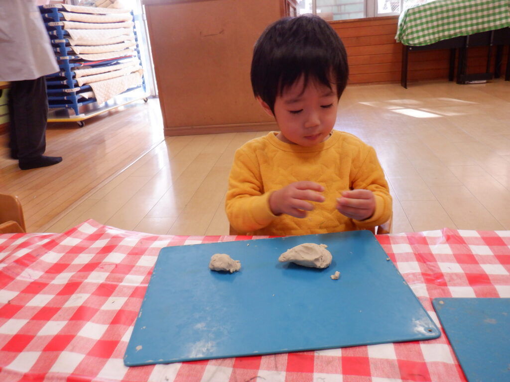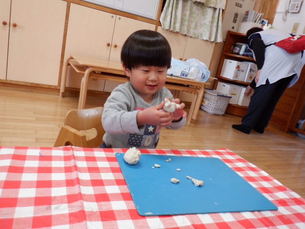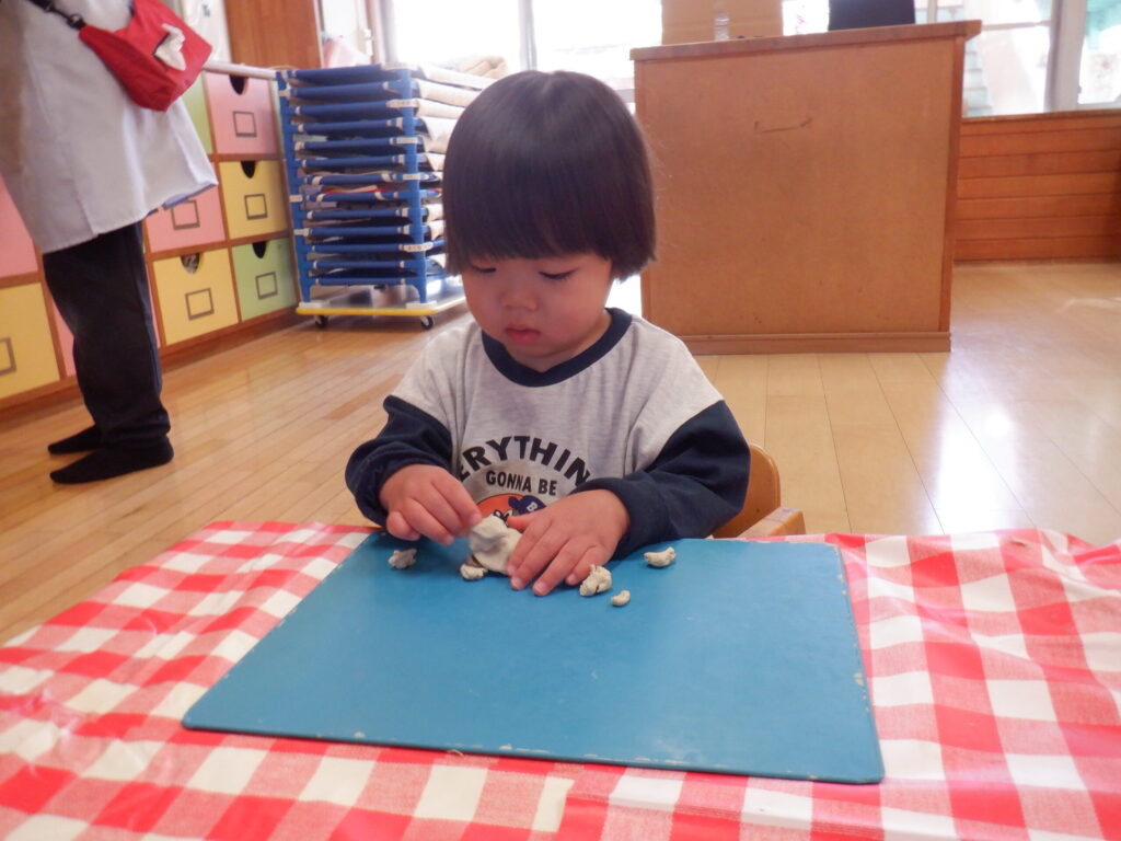 みんなで粘土をちぎって楽しく遊んでいました😆