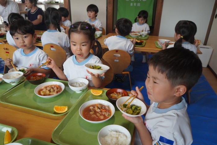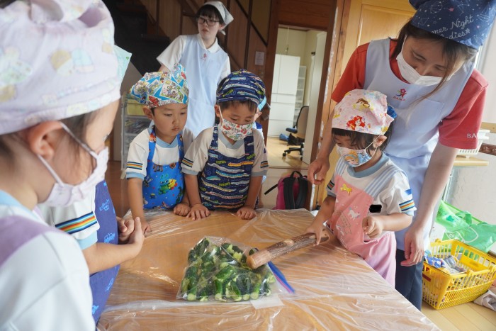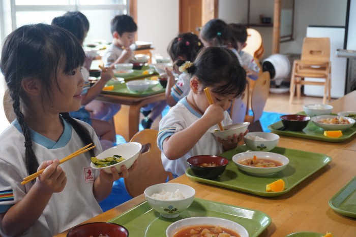 お給食になると叩きキュウリと味噌汁をぺろりと食べ、何度もおかわりをする子もいました♪