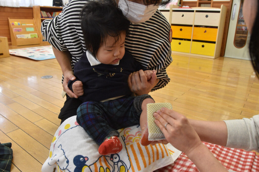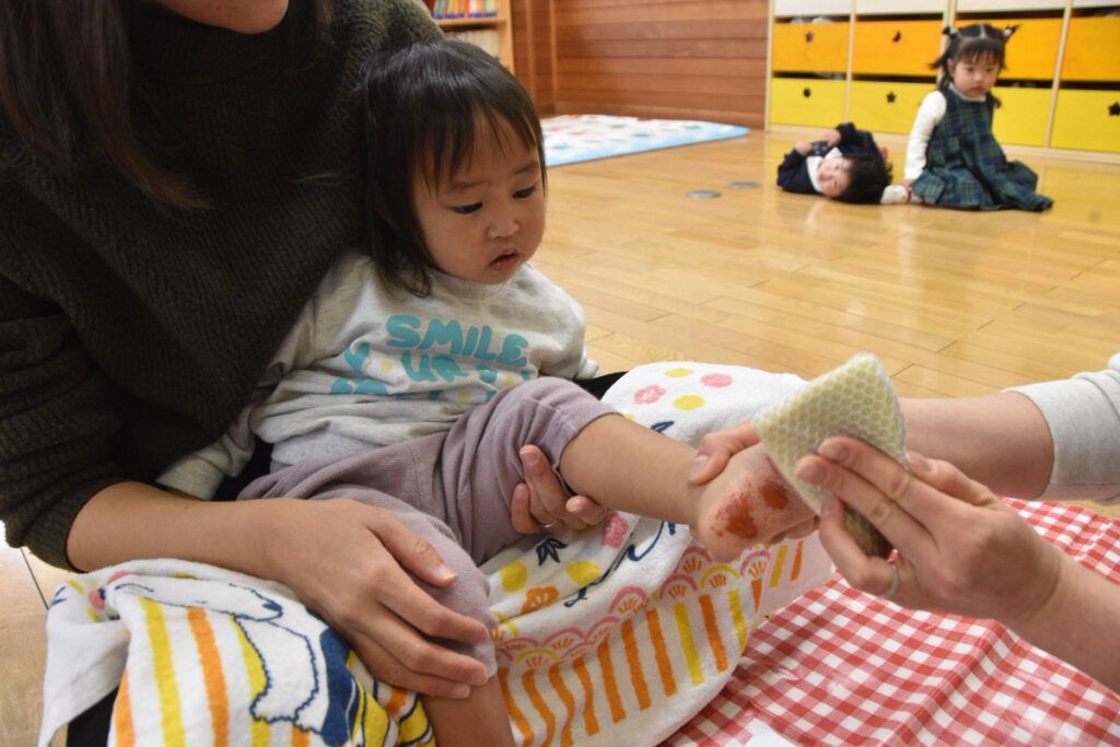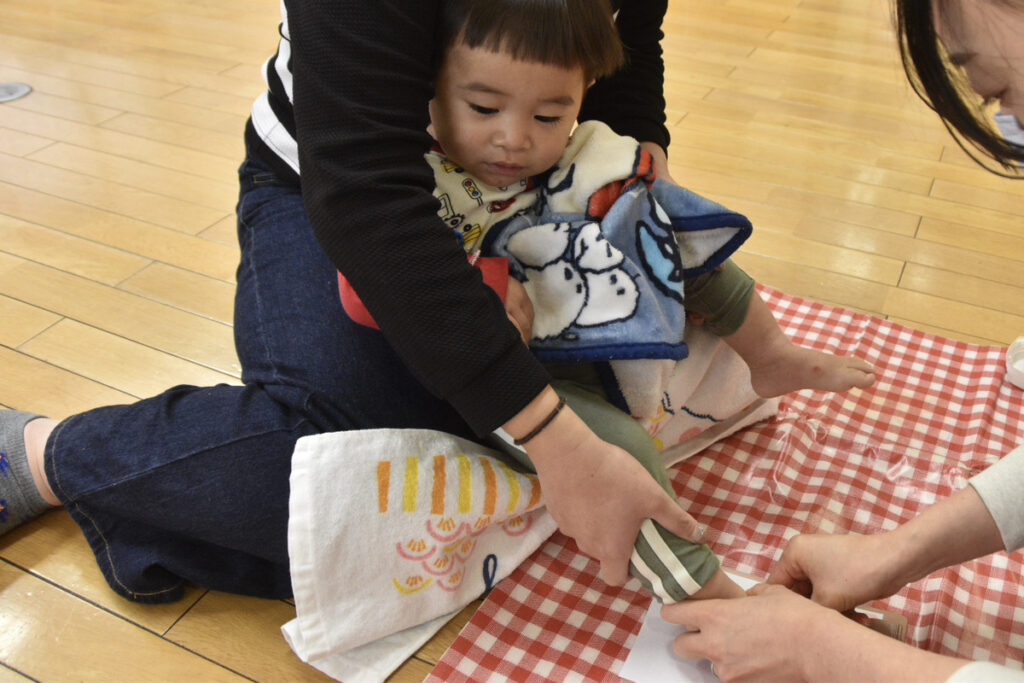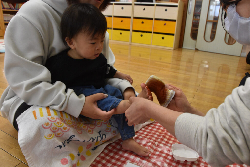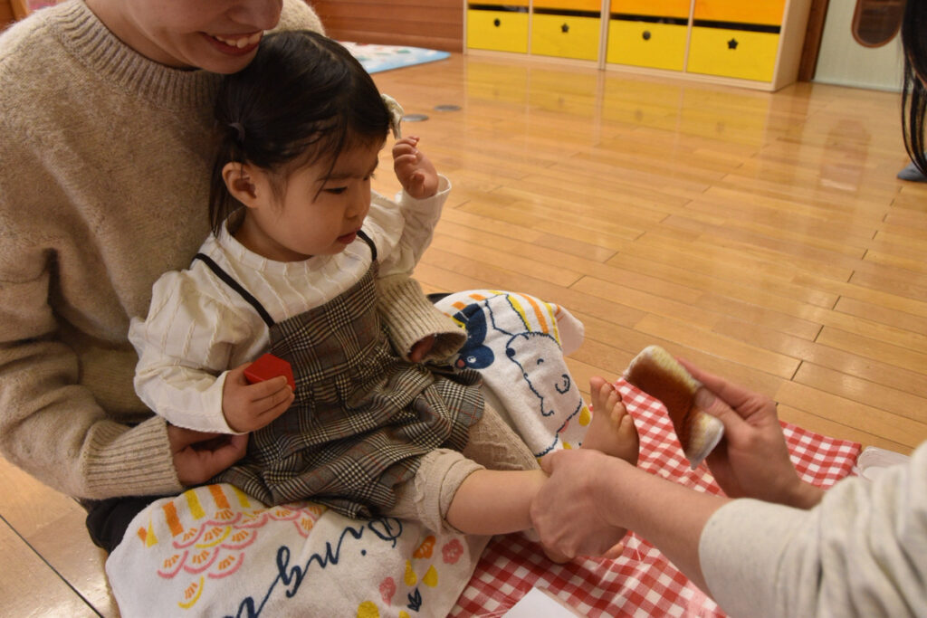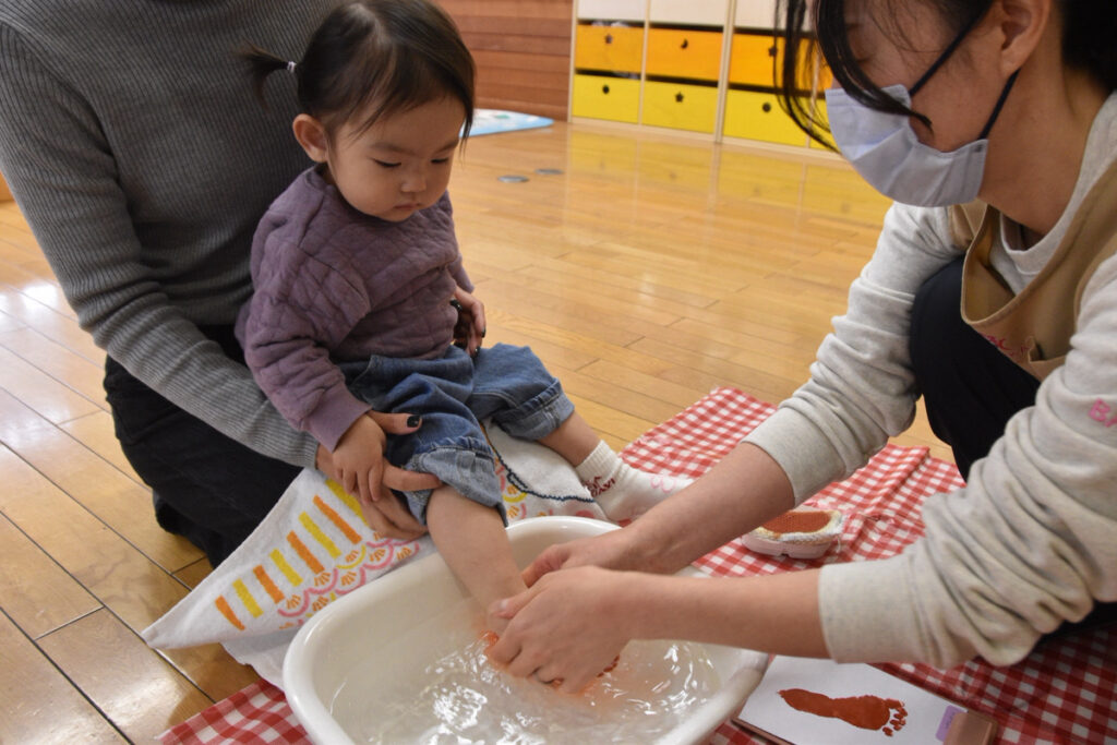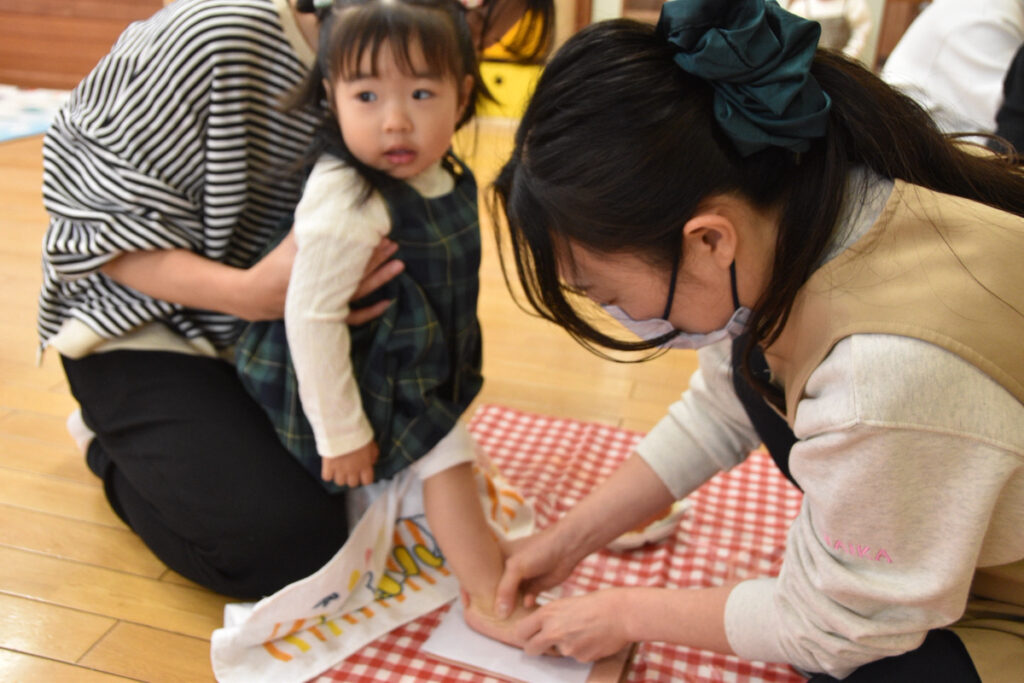 大きいクラスのお友達は足型ペッタンはお手のもの👏👏