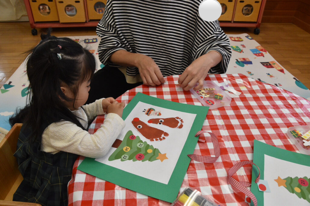 キラキラのシールやプレゼントで飾り付けして素敵なアドベントカレンダーの出来上がり♪