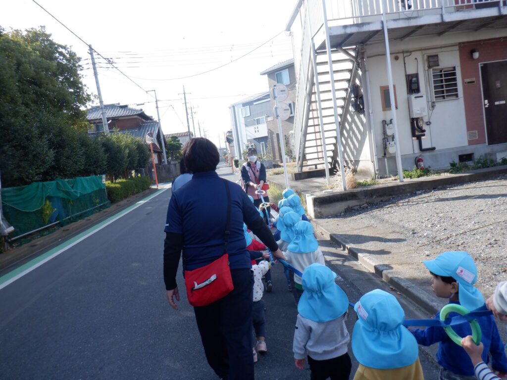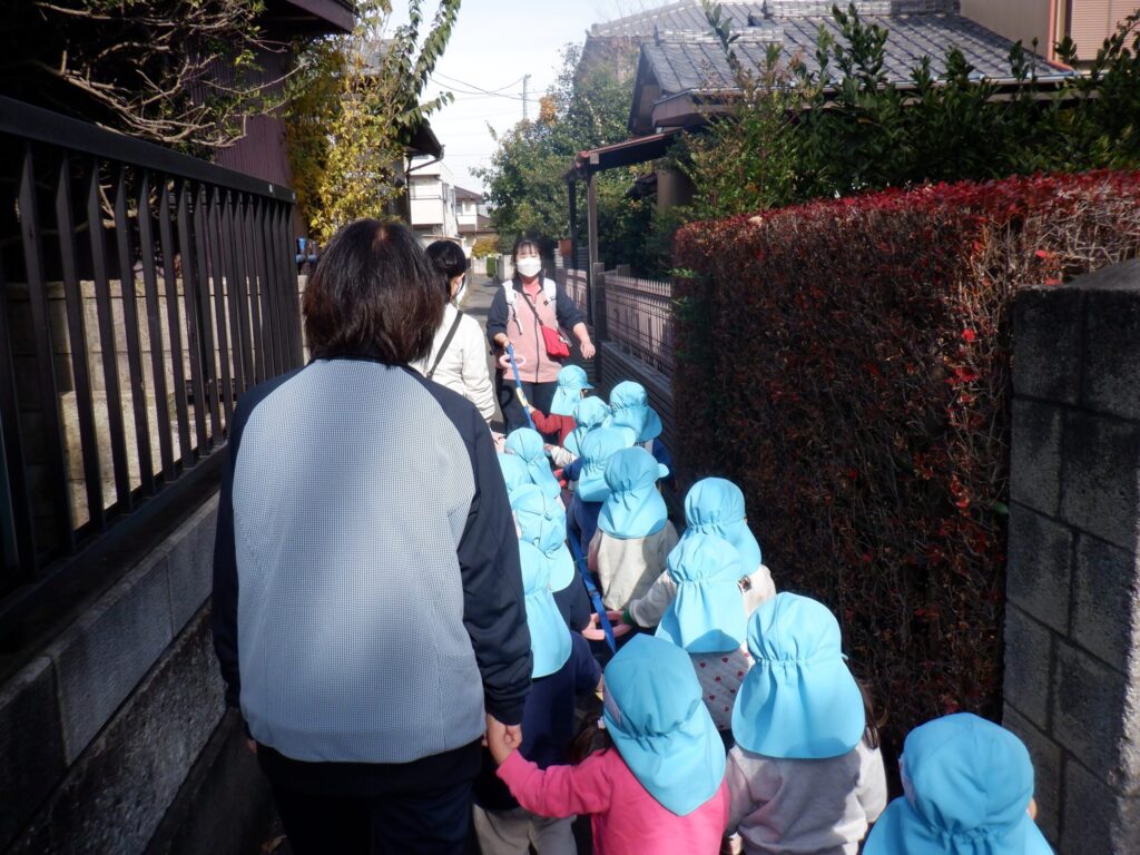 細い道を通ってみんなで楽しくお散歩しました🎵