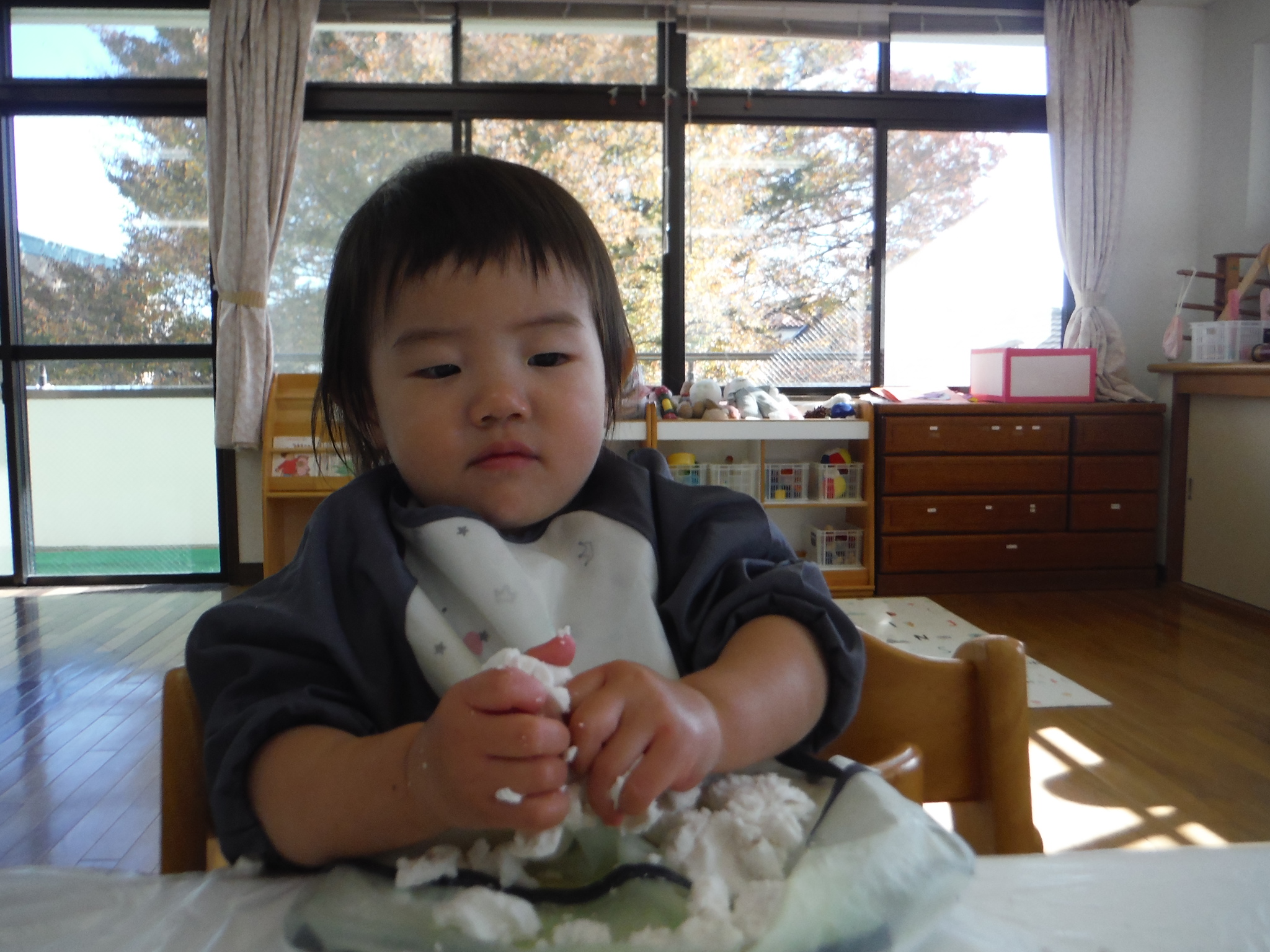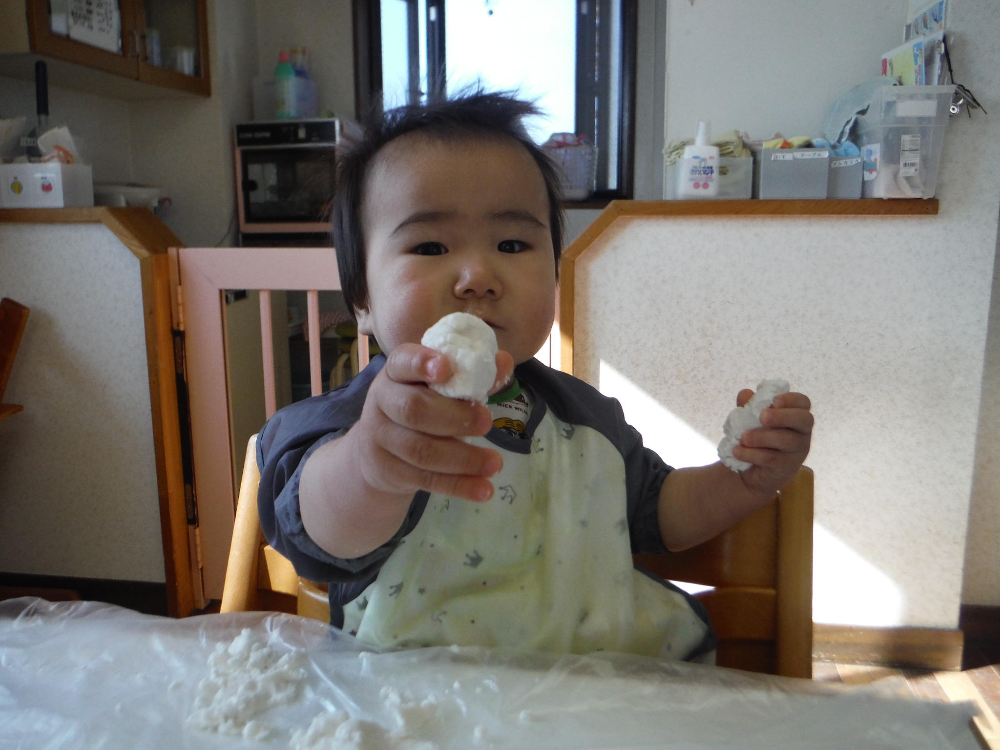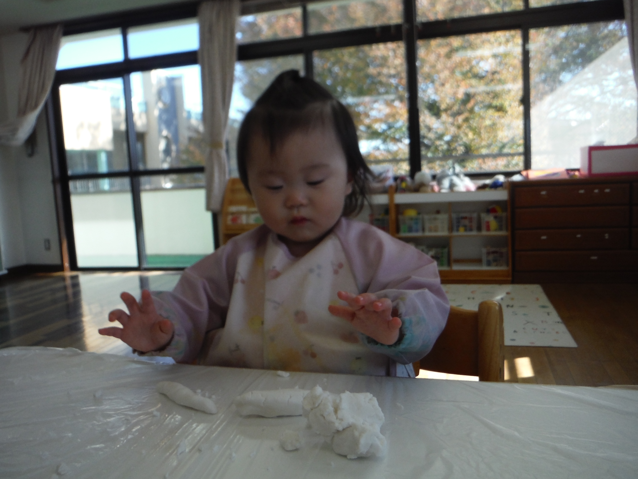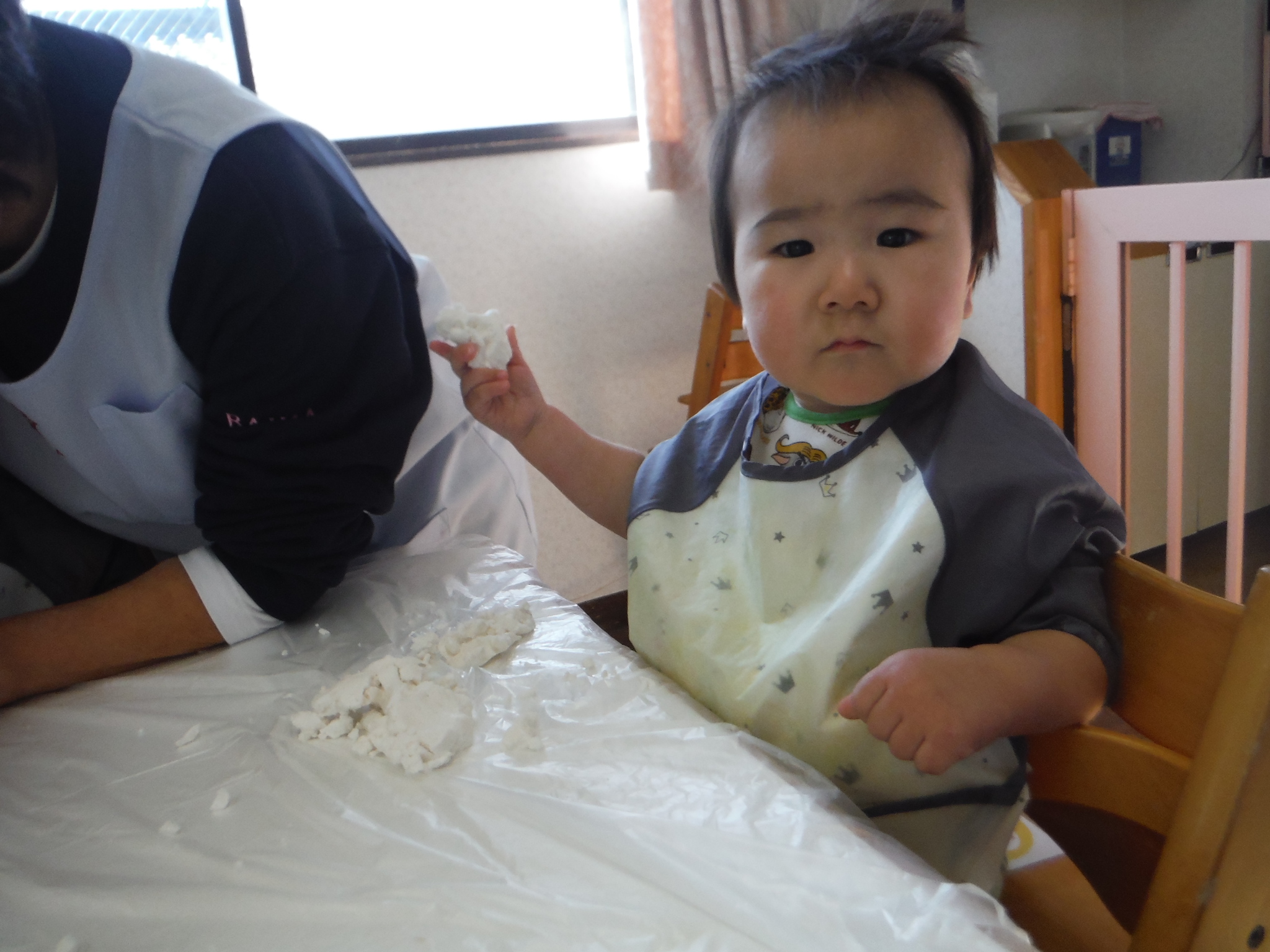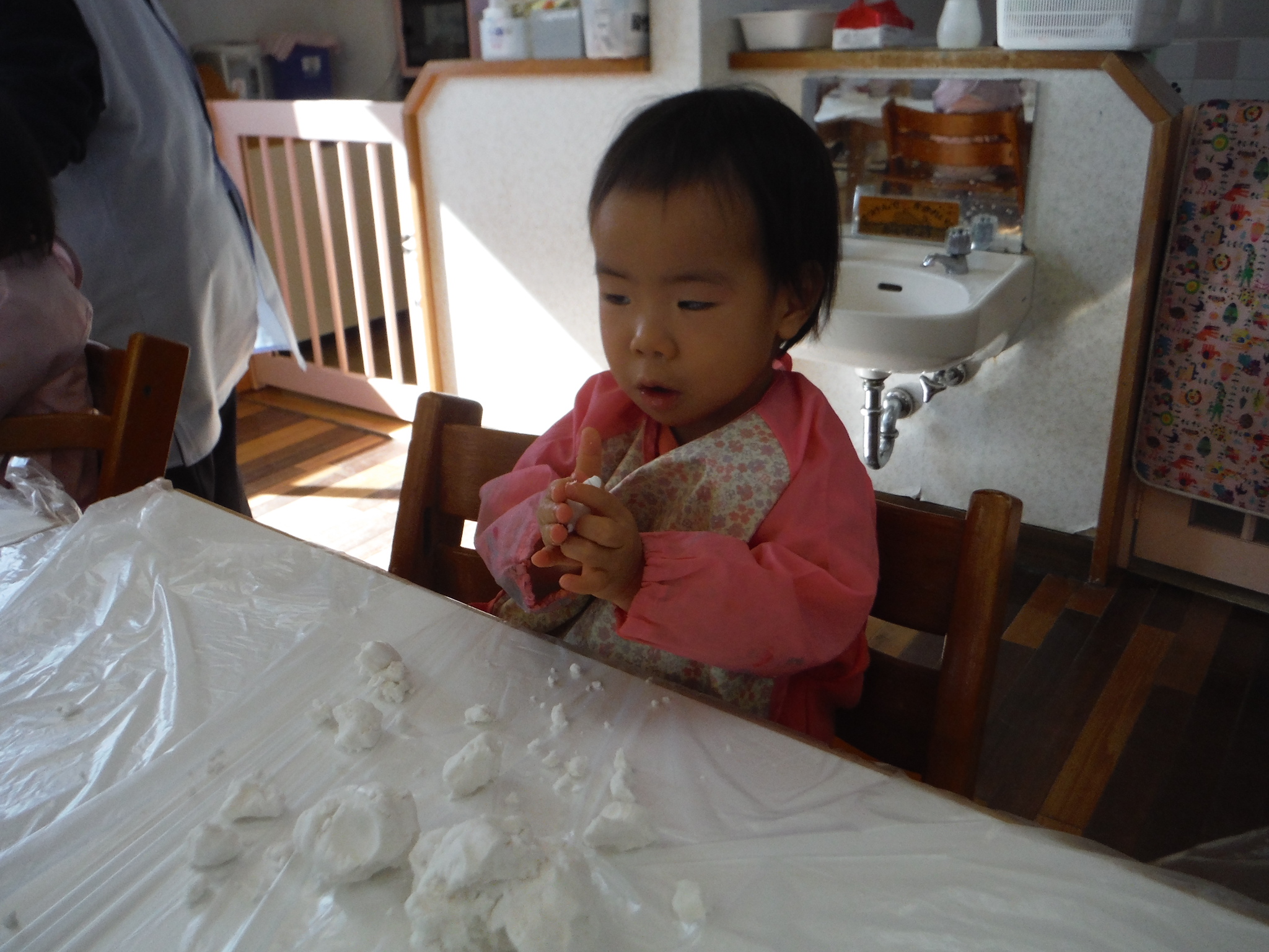 今週は、上新粉で遊びました。にぎにぎしていると気持ちいね!「これどうぞ!」してくれました