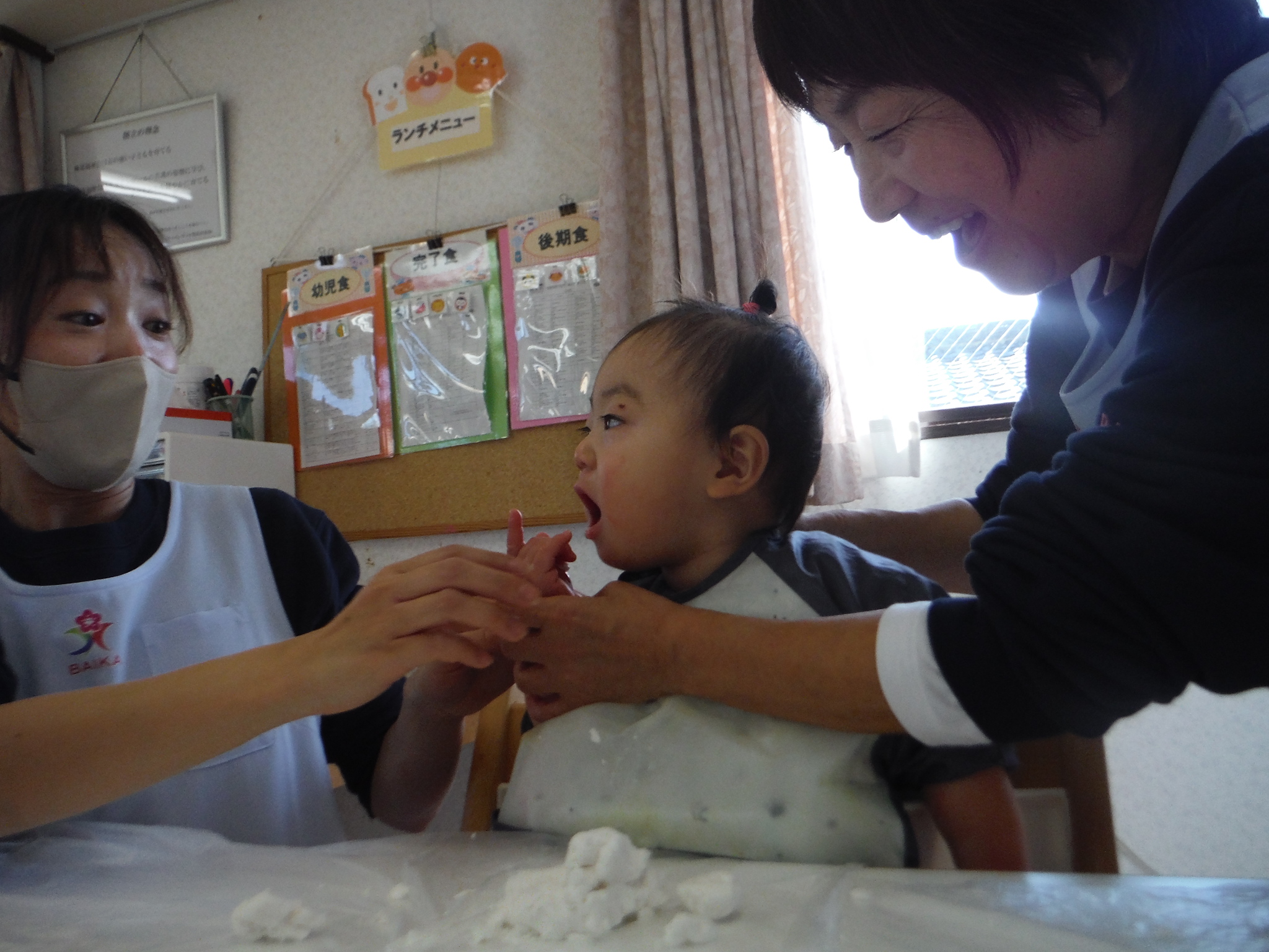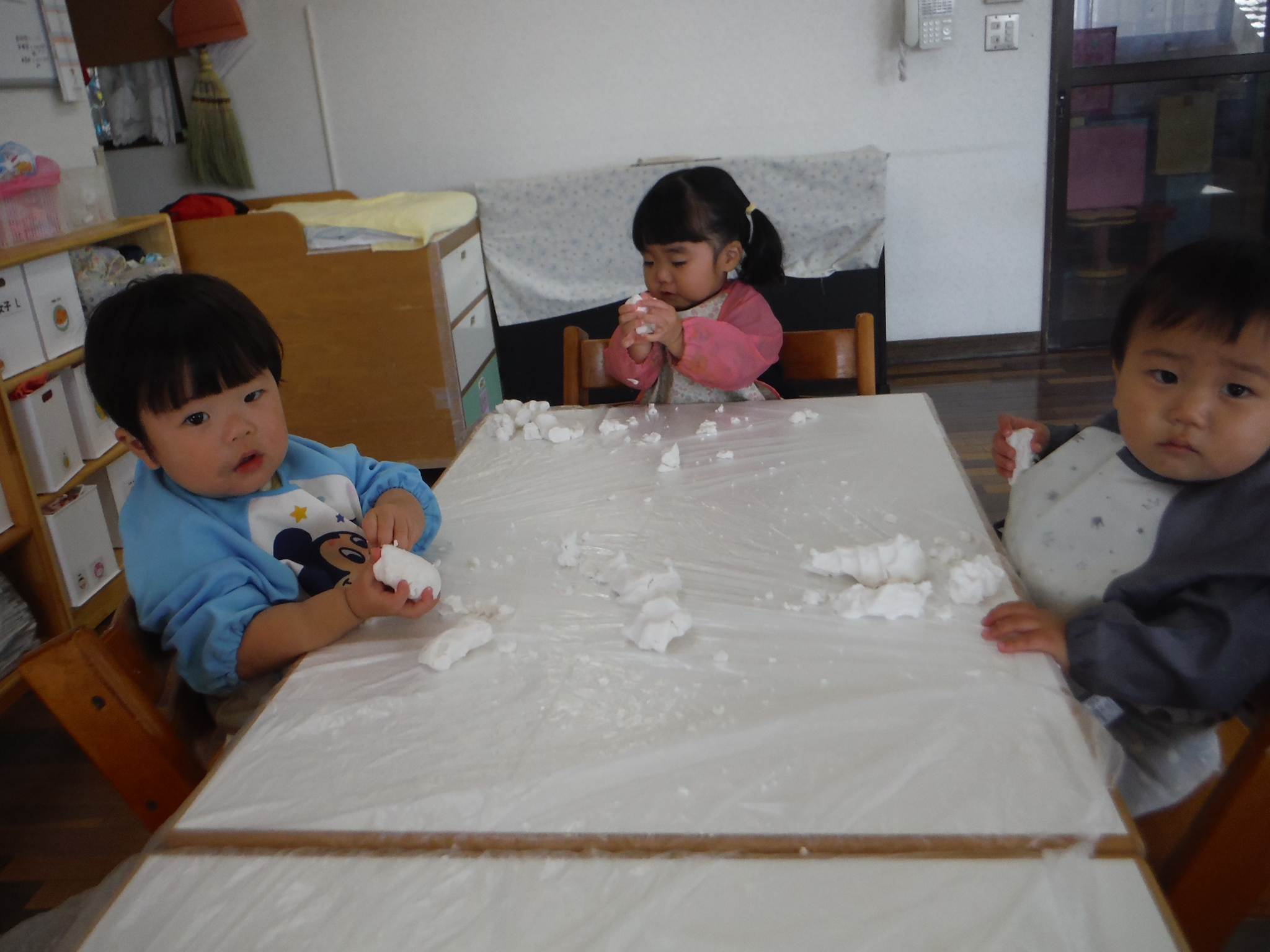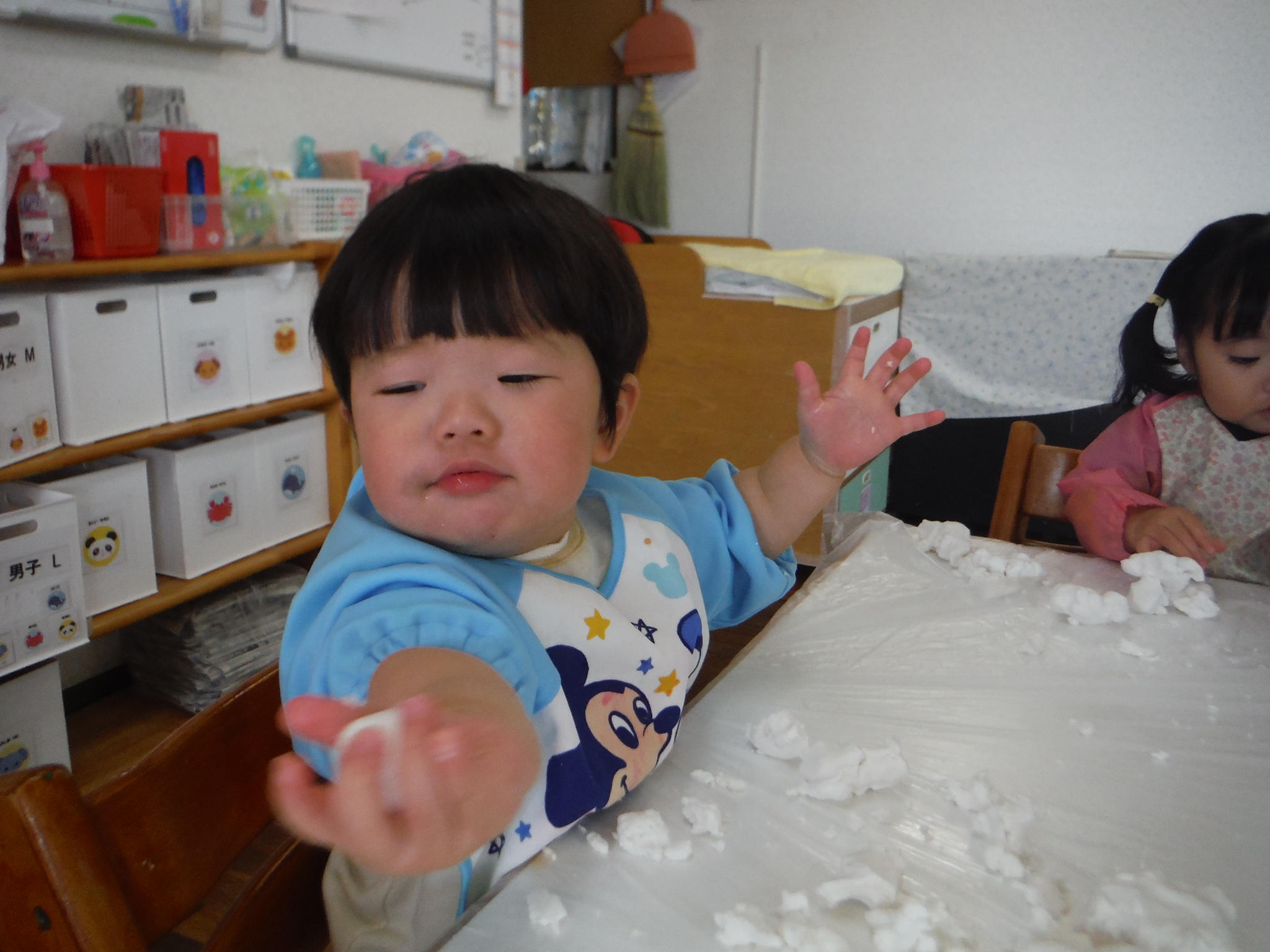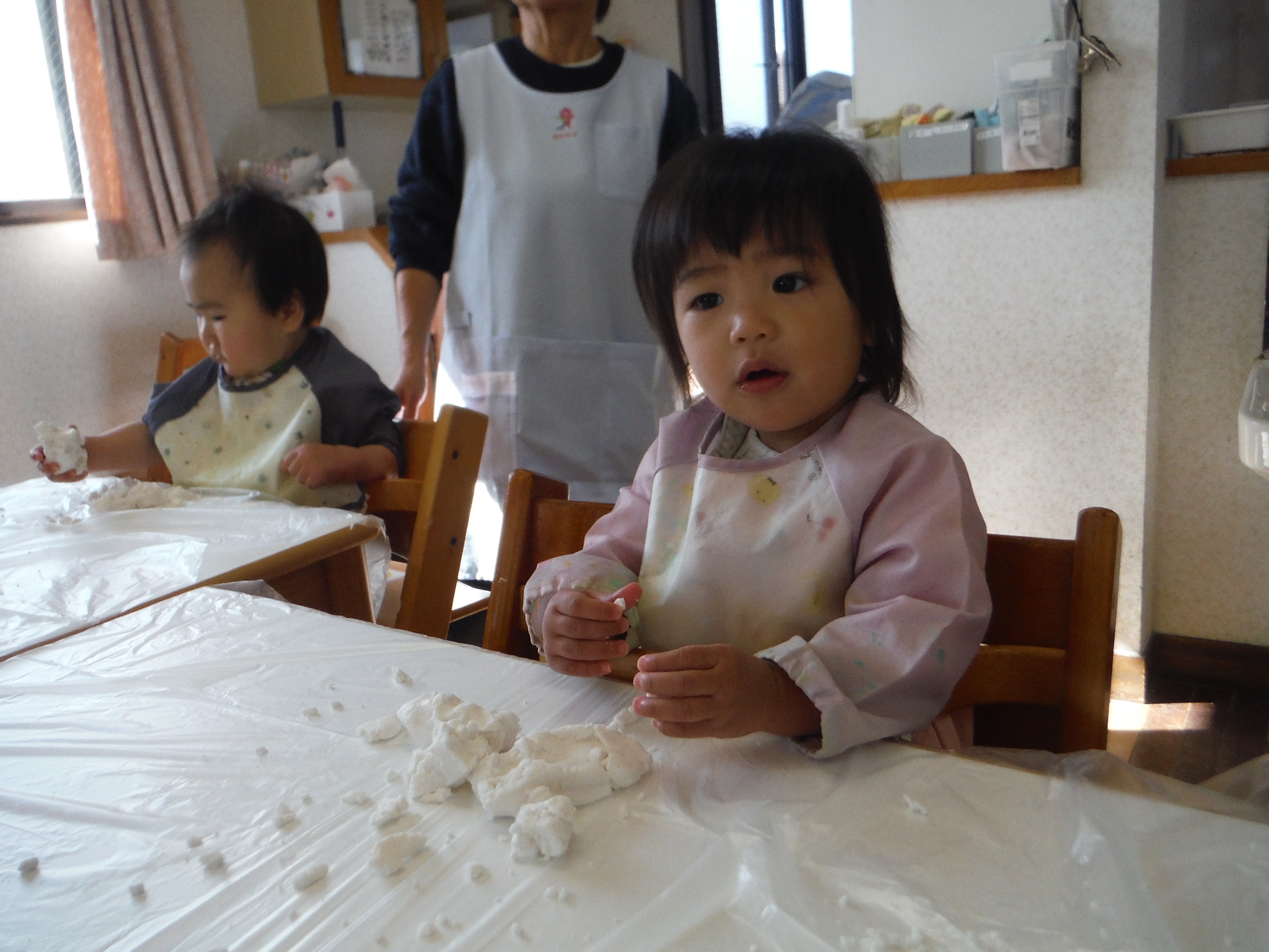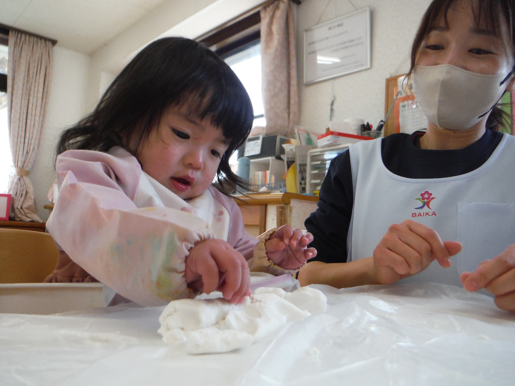 今週は、上新粉で遊びました。にぎにぎしていると気持ちいね!「これどうぞ!」してくれました
