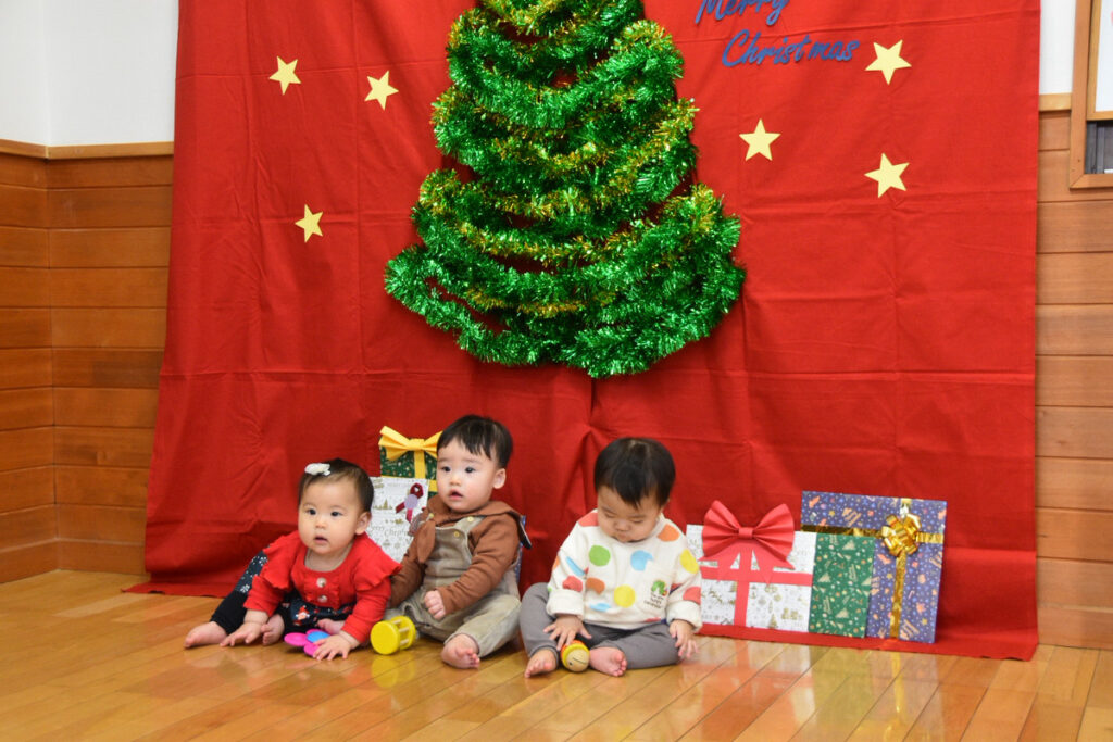 食事の前にはクリスマス飾りの前で仲良く撮影タイム!