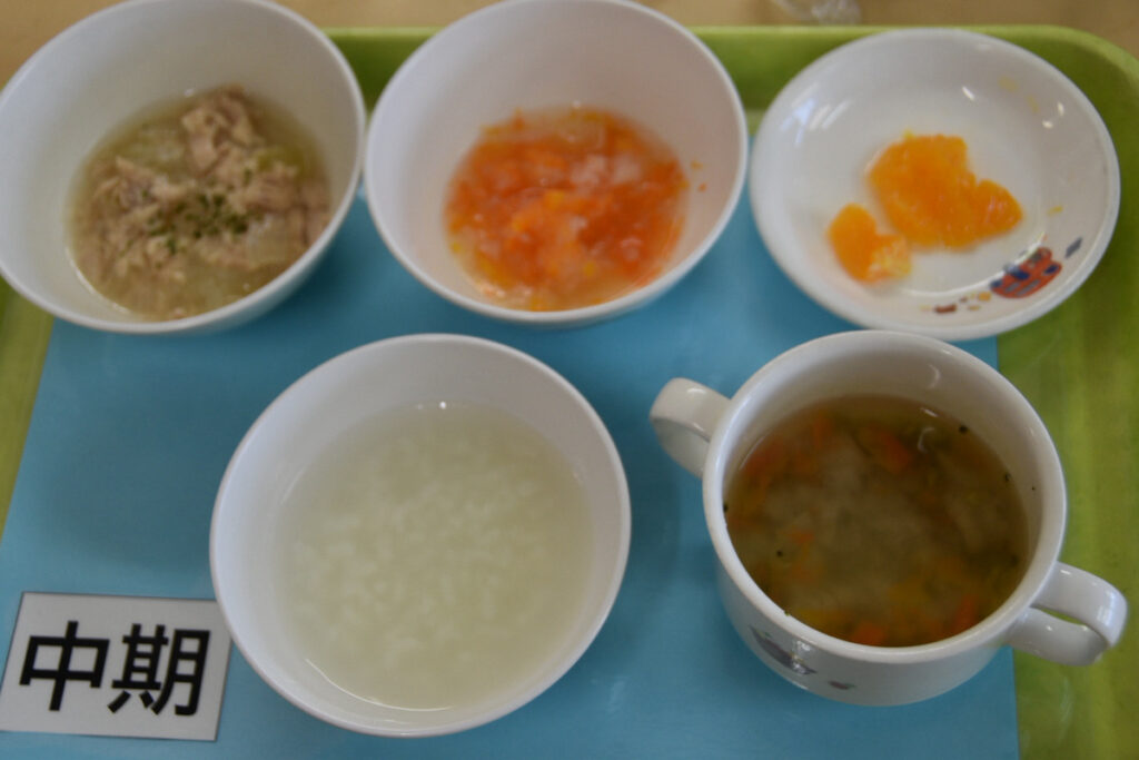 ★中期食★ ・7倍がゆ ・みそ汁 ・ツナと野菜の煮物 ・大根マッシュ ・果物