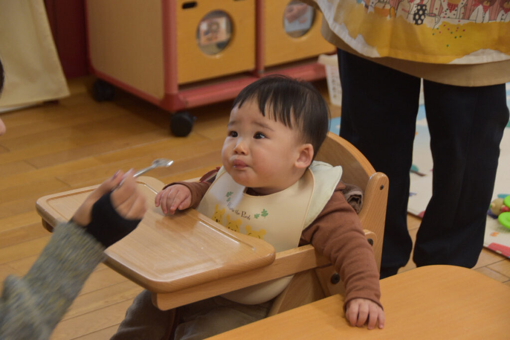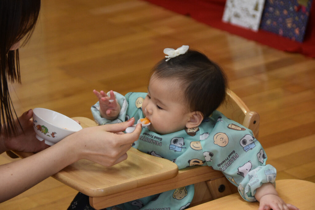 離乳食もお口を上手に開けて、モグモグ!