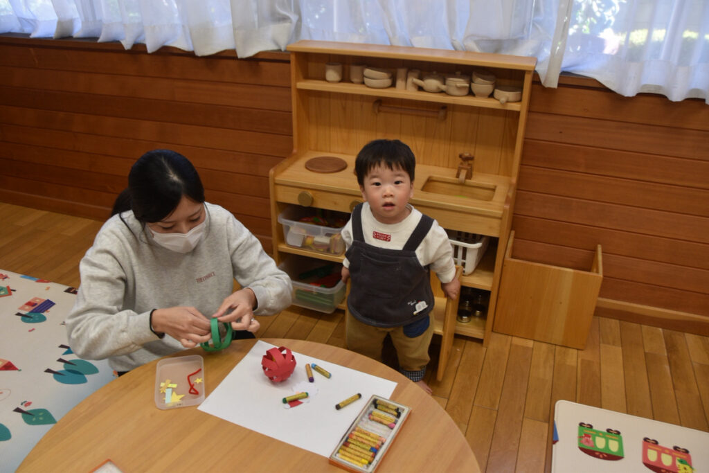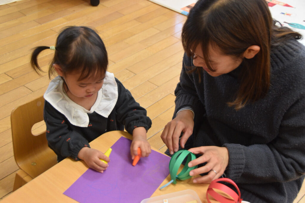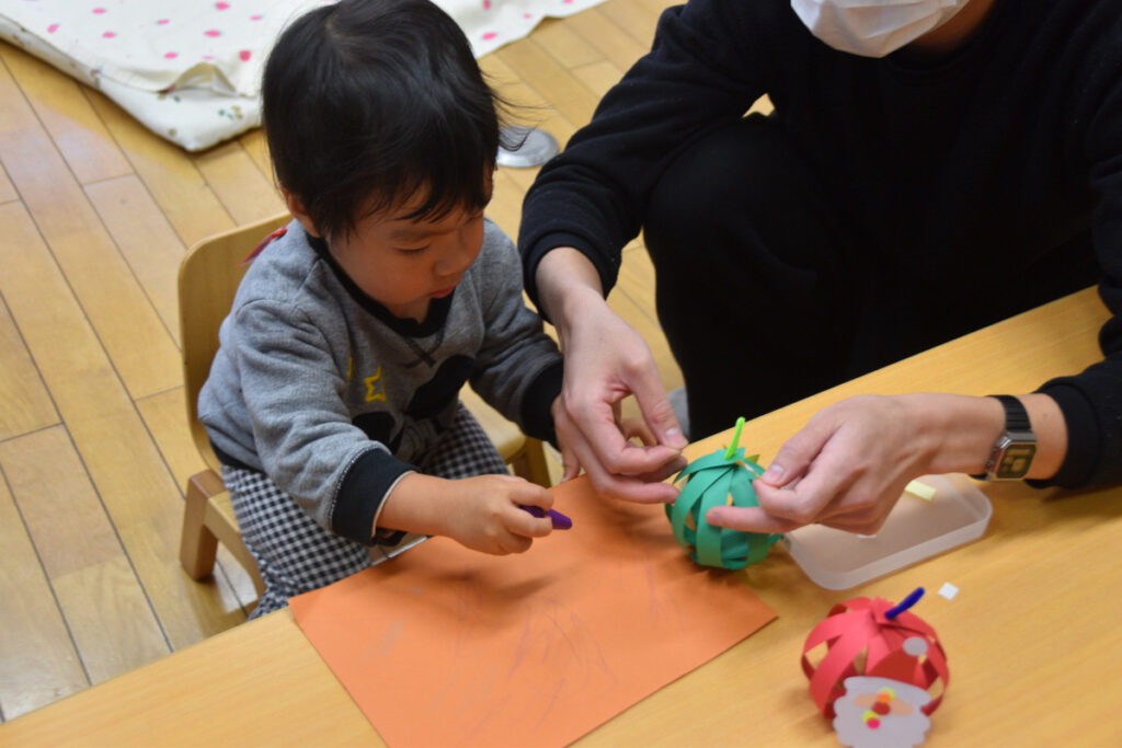 シールを貼ったり、クレヨンでサンタクロースのお顔を描いたりして楽しみました❤