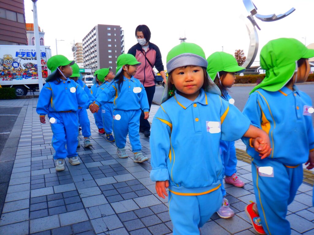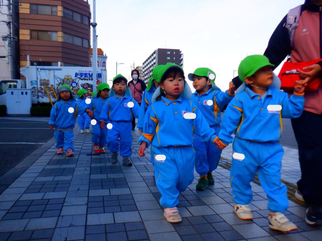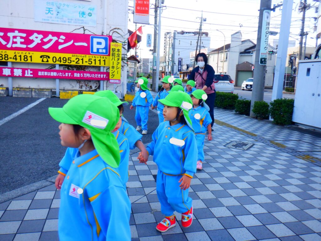 初めて本庄駅までお散歩に行きました!「電車を見に行こう!」とお話すると、嬉しそうに目をキラキラさせていたひまわり組さん。みんなで横断歩道を渡るのは初めてでしたが、「青は?」「すすめ!」「赤は?」「止まれ!」のお約束をしっかり守り、車から見えるよう手をピン!と挙げてわたることができました🚥