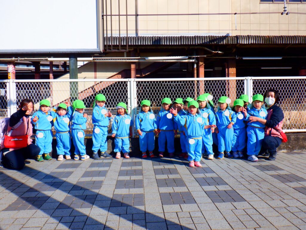 近くで見る電車は迫力満点で、皆ニコニコ笑顔で見ていました!電車を4本も見ることができて嬉しそうにしていたひまわり組さんでした🚃