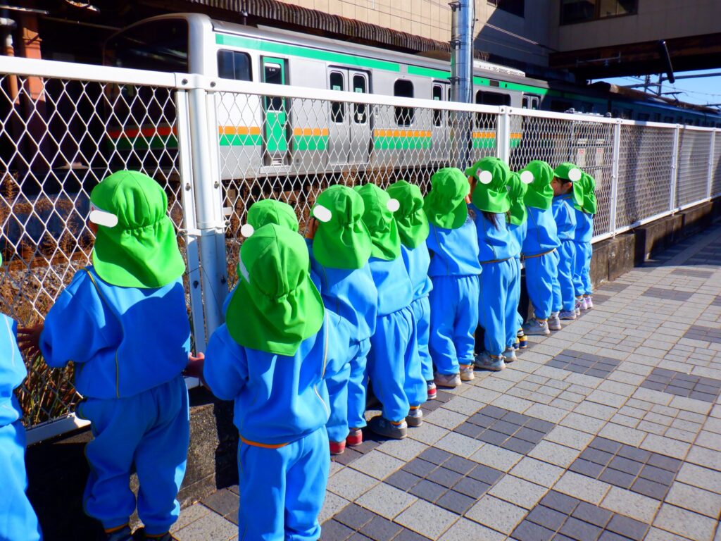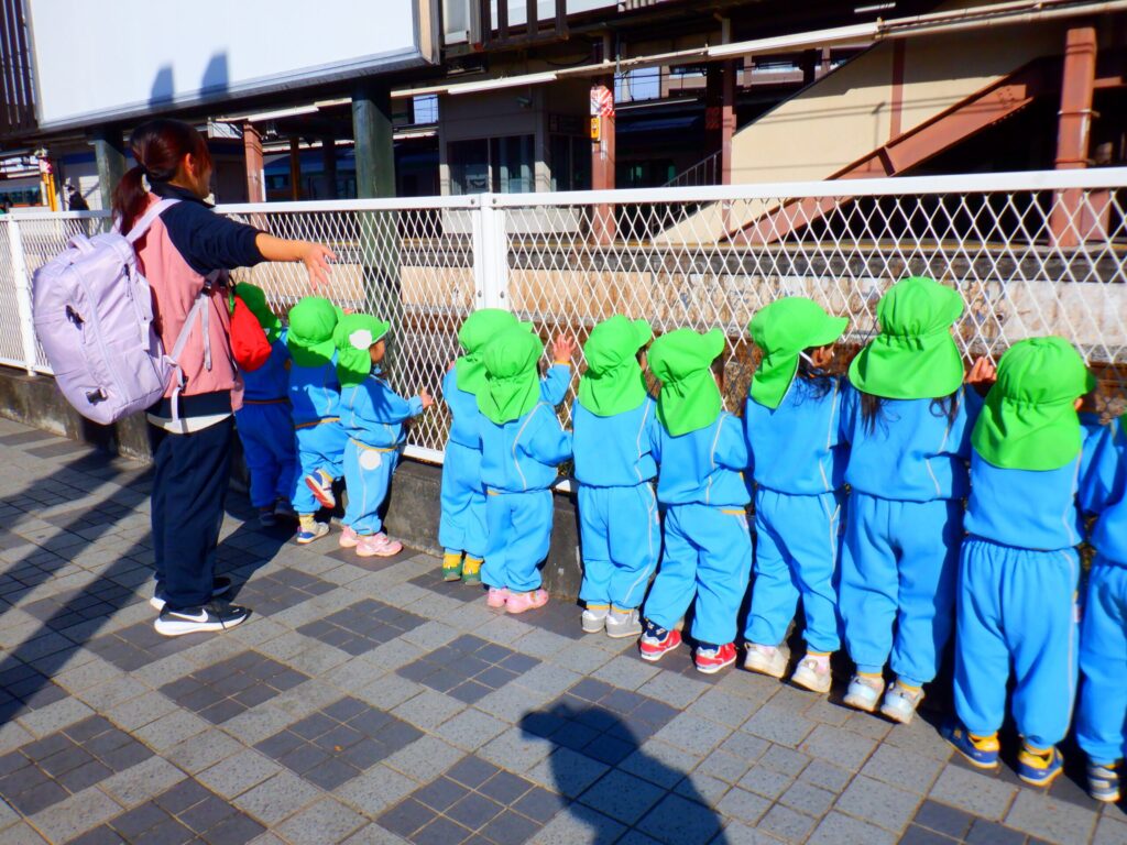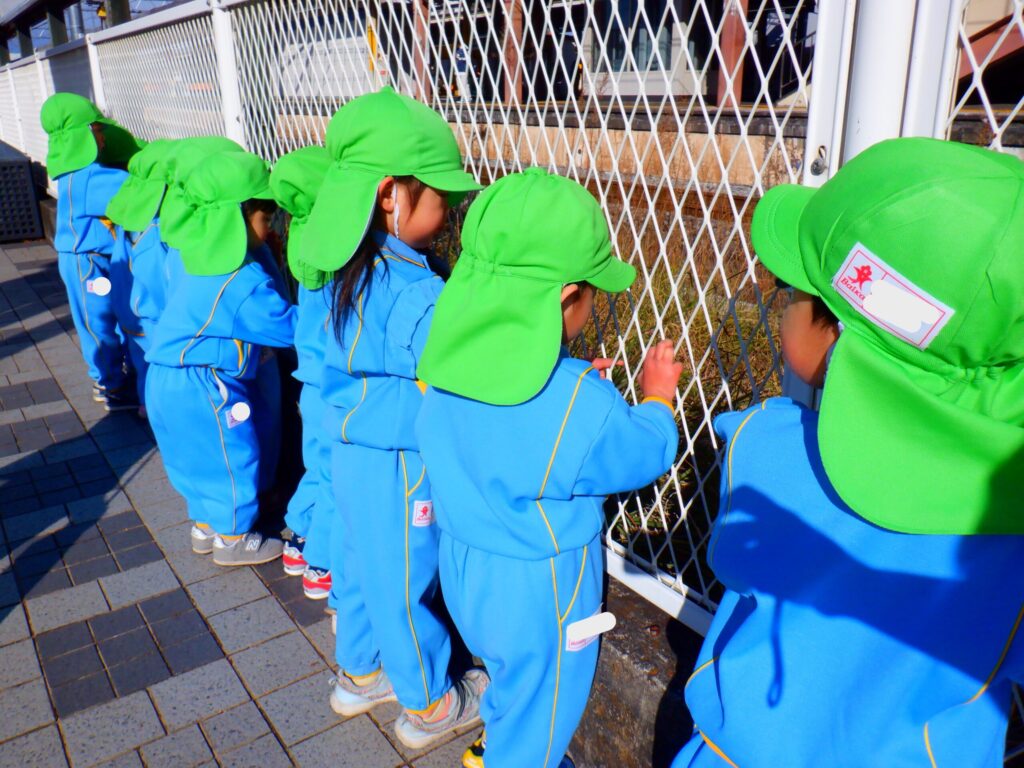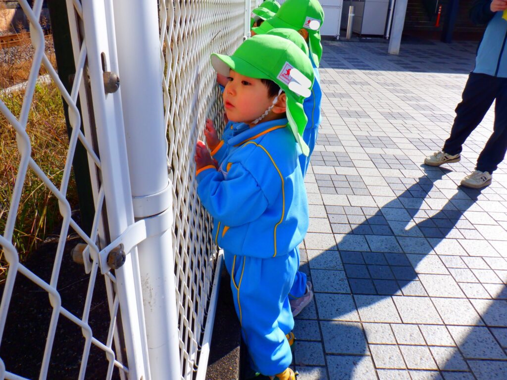 駅に着くと柵につかまり、来るかな来るかな?と線路を眺めていました。駅からアナウンスが聞こえると「声が聞こえる!」「電車来るんじゃない!?」と嬉しそうにお友達とお話していました!