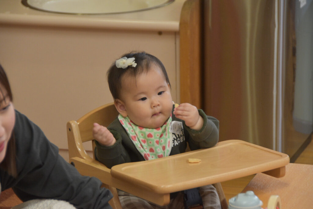 月齢が高いお友だちはママと一緒におやつタイムにしましたよ♪