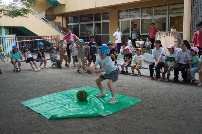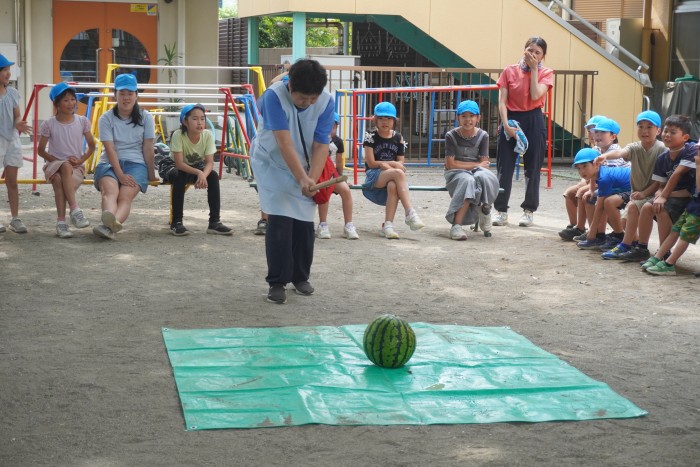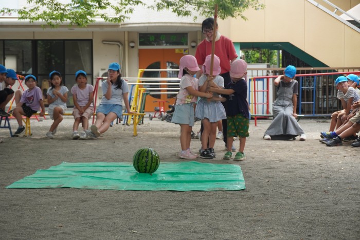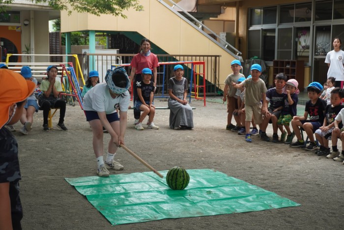 お部屋の先生やボランティアの先生もスイカ割りに挑戦してくれました!