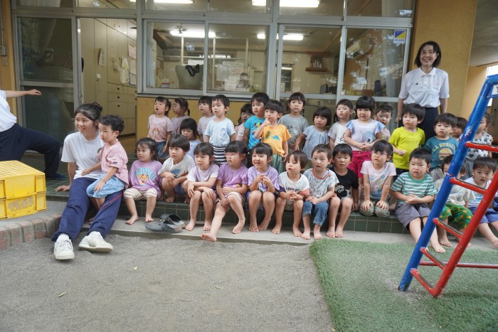 すみれ、ひまわり、たんぽぽ組のお友達も気になって見に来てくれました♪