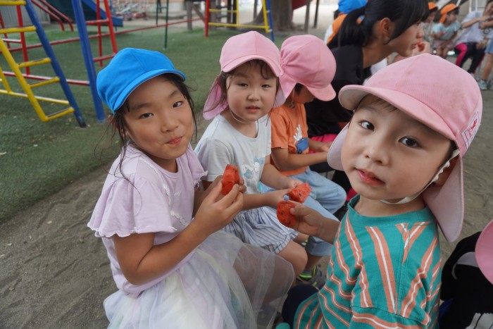 みんなでお外で食べるスイカはより美味しく感じました☺️