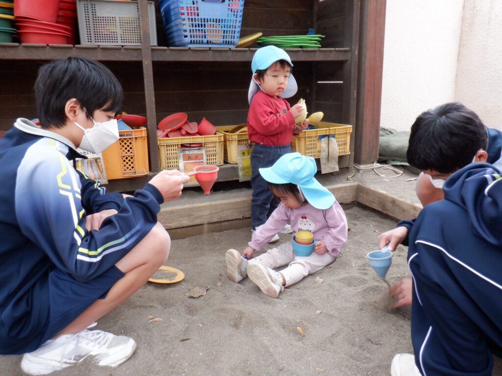 中学生のお兄さんお姉さんに遊んでもらっている写真です📸