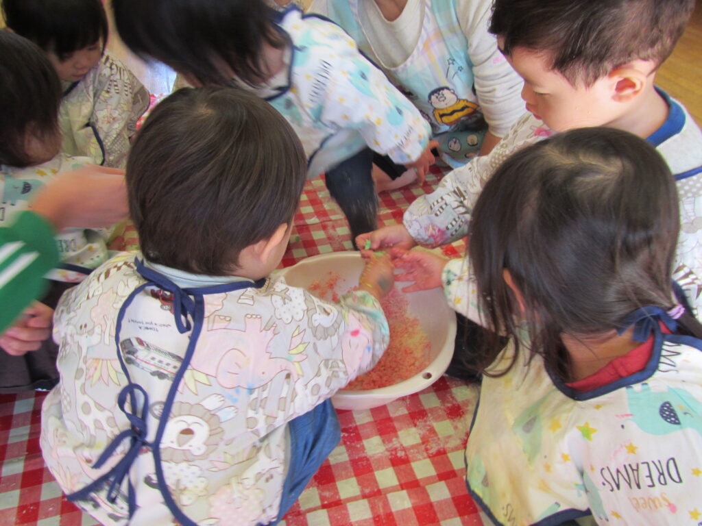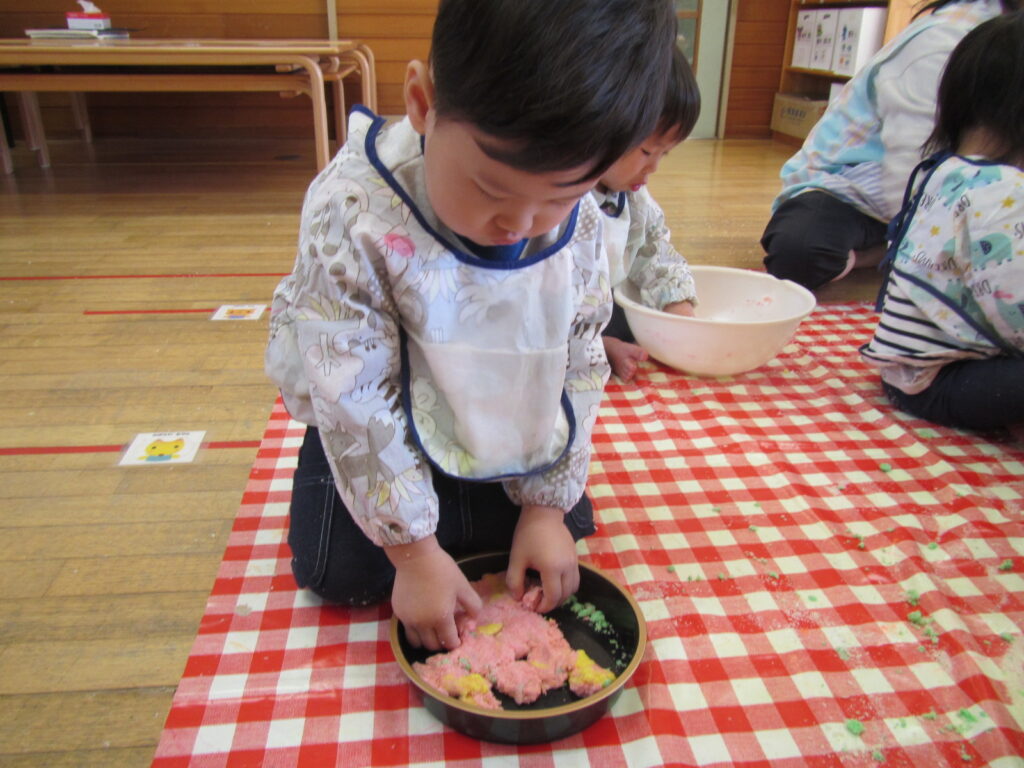 パン粉で遊びました🍞色を付けて目でも楽しみました👀