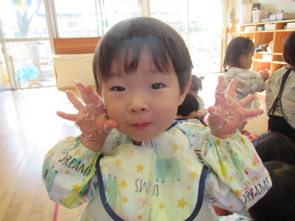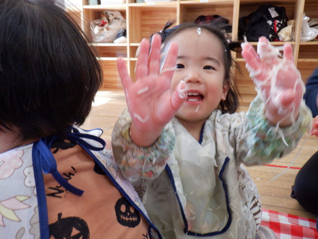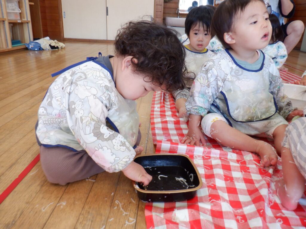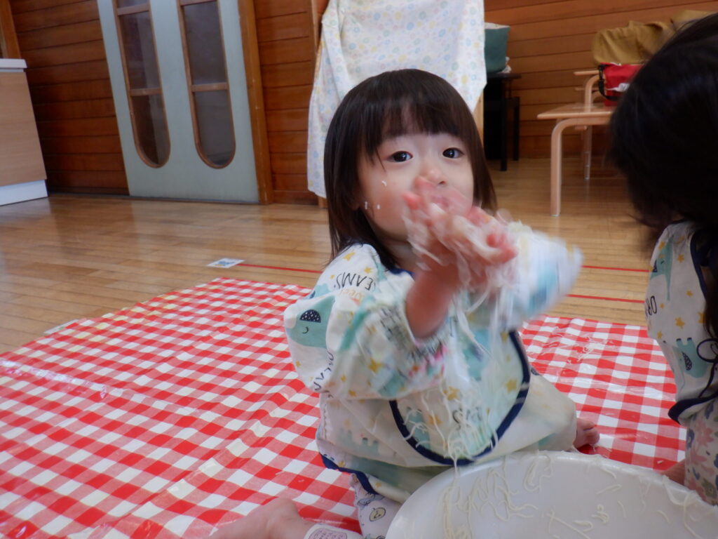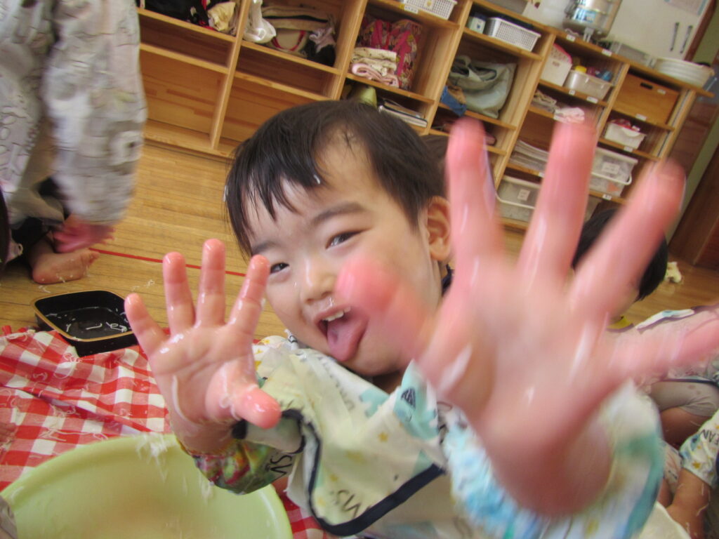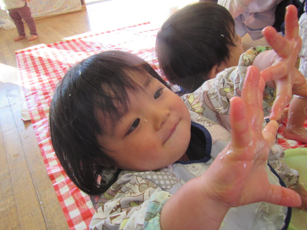 感触遊びの様子です✋